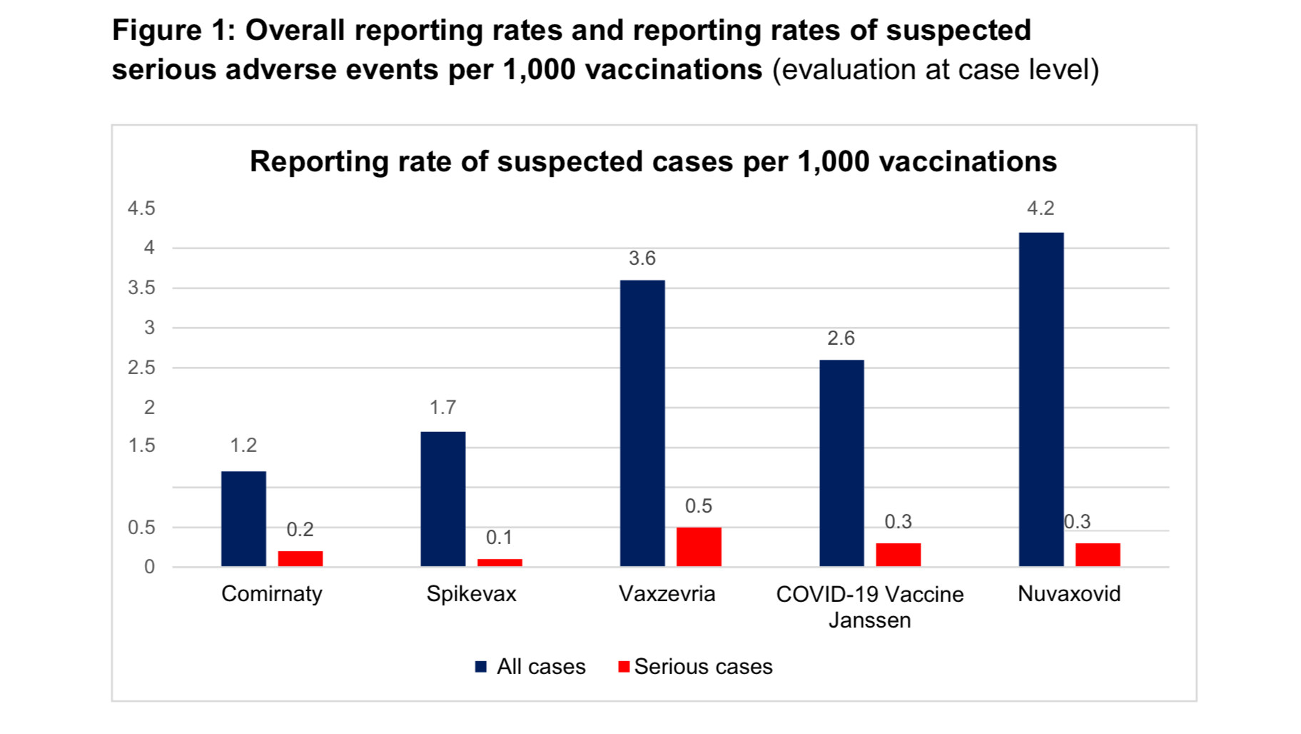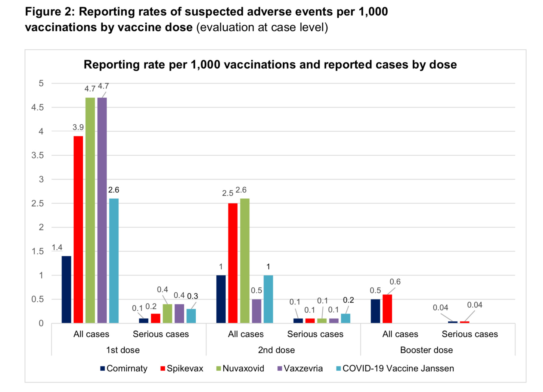 - The overall reporting rate for all vaccines was 1.7 reports per 1,000 doses of vaccine. The reporting rate for serious adverse events was 0.2 reports per 1,000 doses of vaccine.