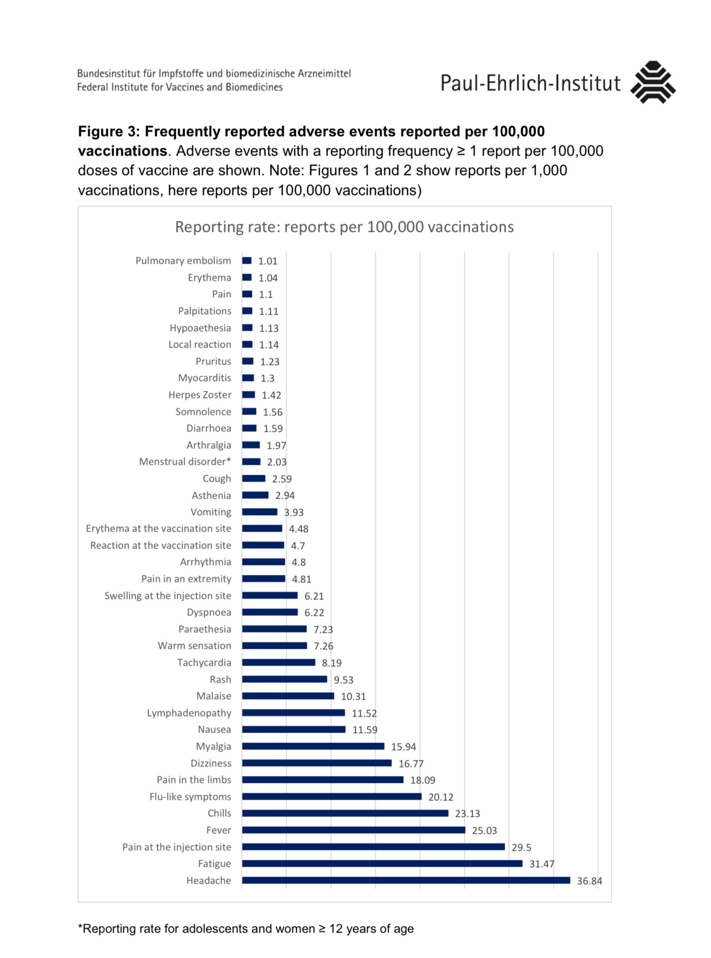 - In the same time period, the Paul-Ehrlich-Institut received 296,233 reports of suspected adverse events.