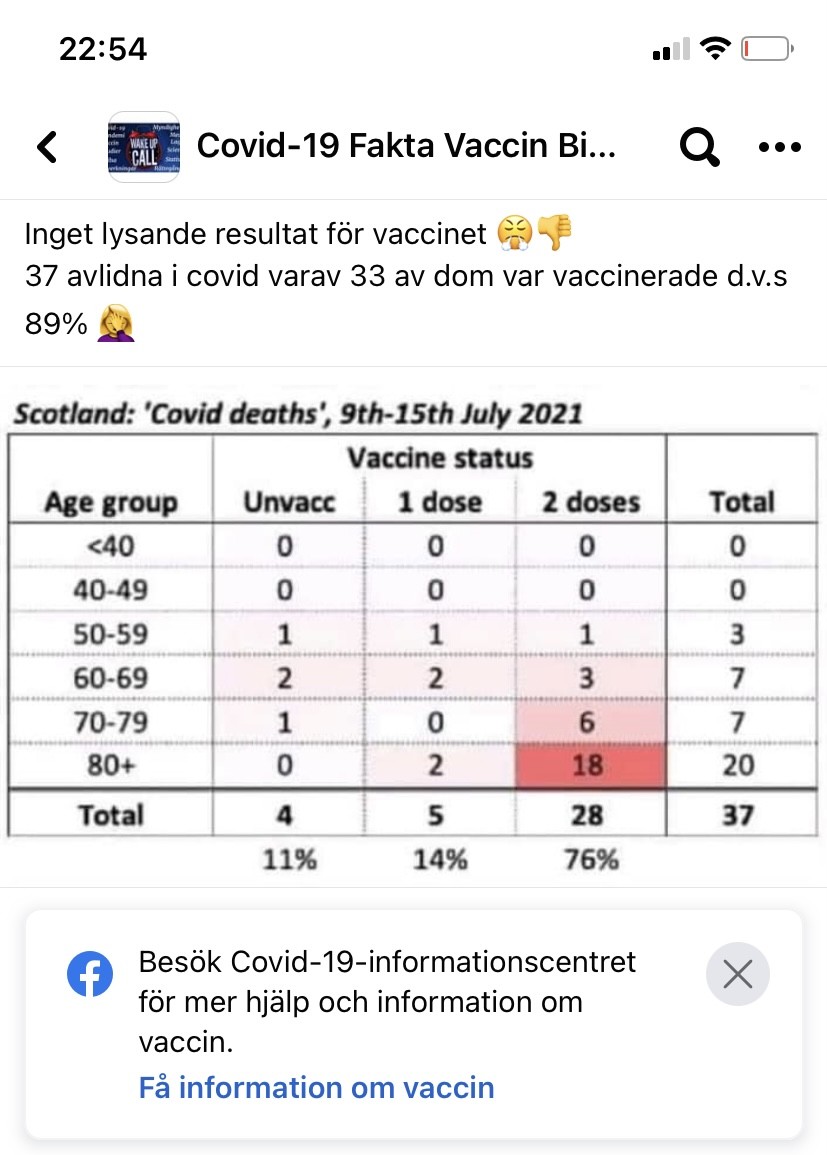 Har du nån källa på dina uppgifter? Inte en länk i forumetP pmd skrev:Idag var det 80.6 % som hade fått en vaccinspruta, och 61,1 % som hade fått två. Vi har en bit kvar till 80 % fullt vaccinerade.