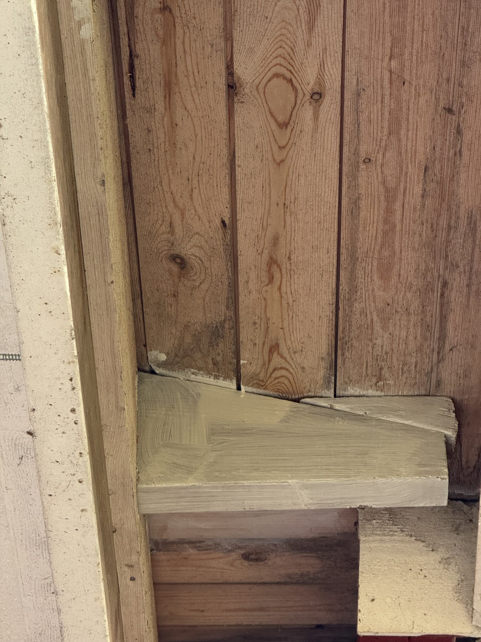 Så bra gällande ströläkten! Om vi lägger en tjockare ströläkt kommer det ju hjälpa med lutningen.