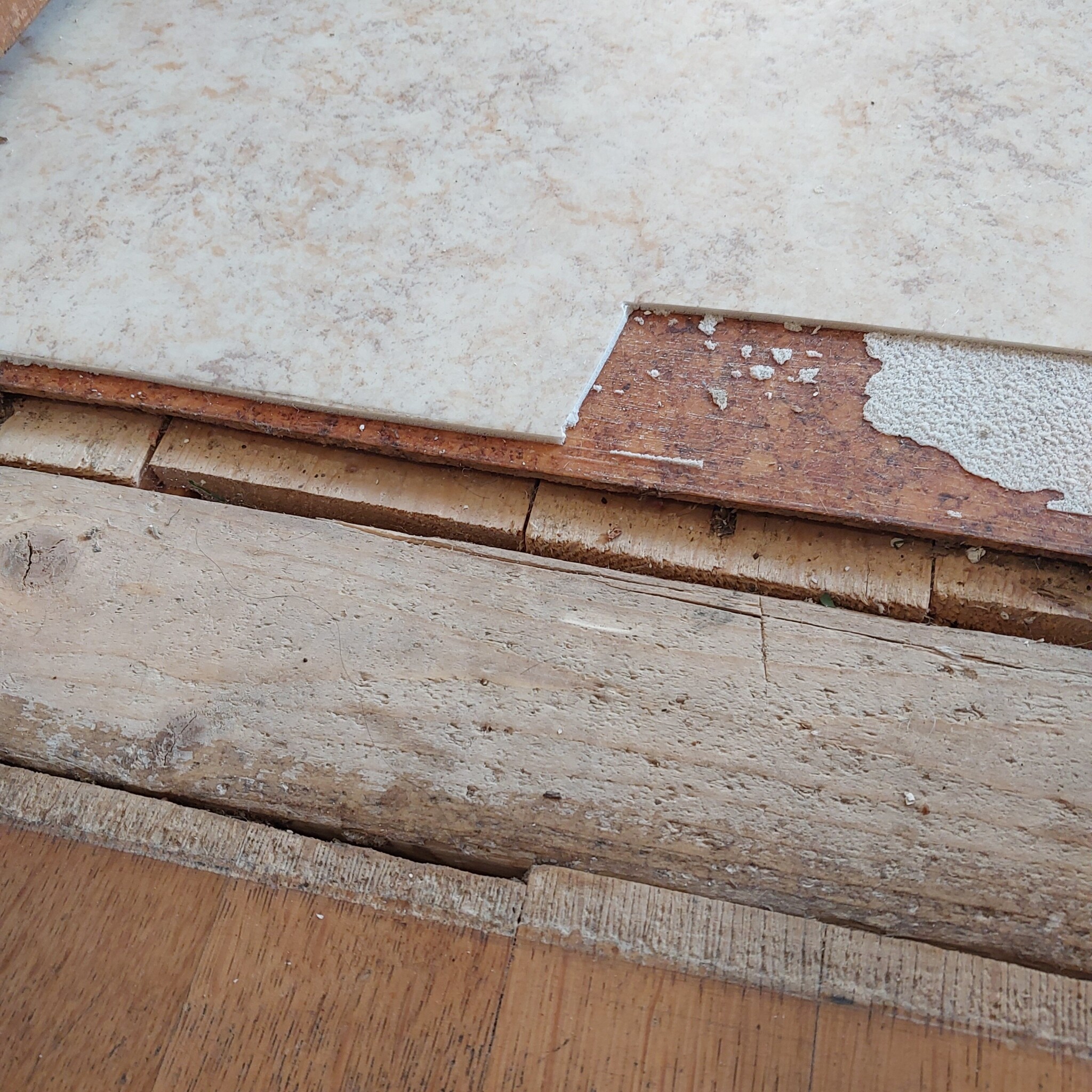 I stundande köksrenovering där golv skall bytas har jag, när jag plockade bort tröskeln in till köket för att börja riva gummimatta och underliggande korkgolv, upptäckt att undergolvet i köket ligger i våg med parketten i hallen. Se bifogad bild.