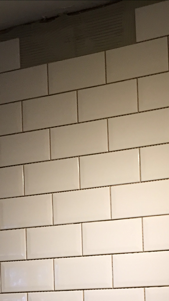 Övade på ett mindre viktigt område i köket som också renoverades, där jag lärde mig av misstaget (dålig bild):