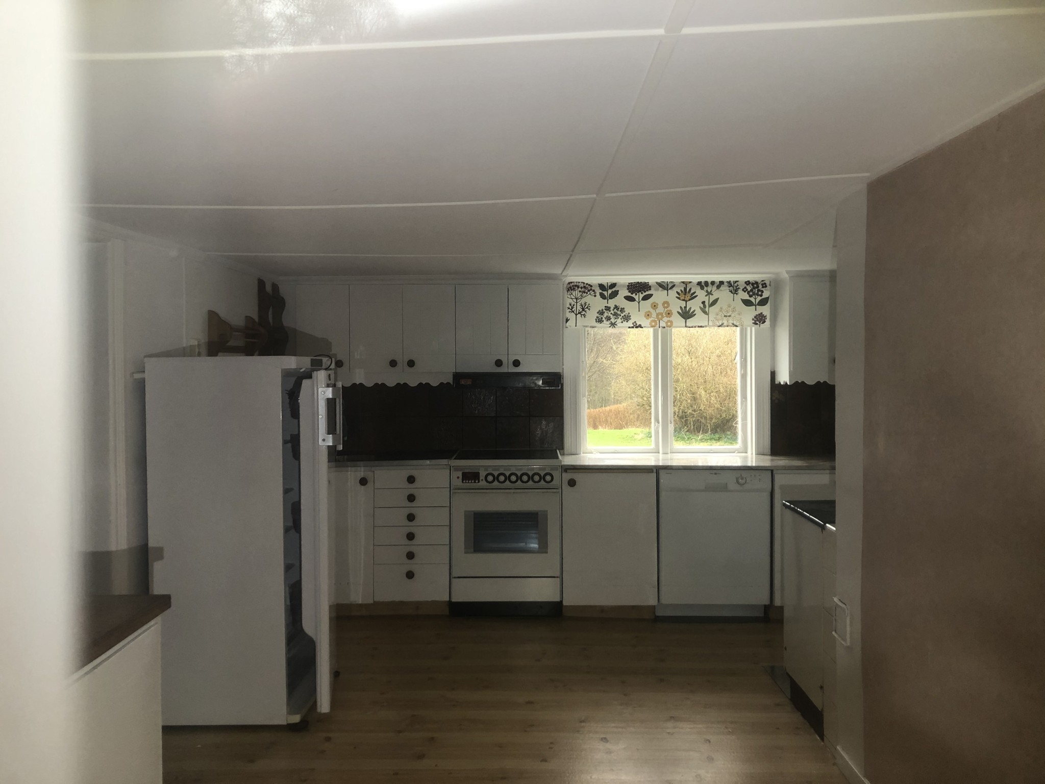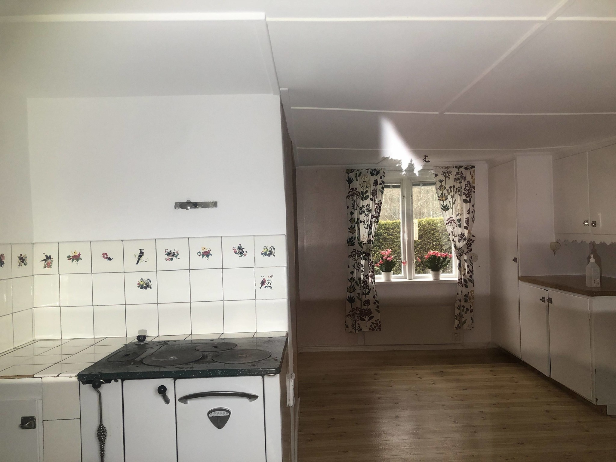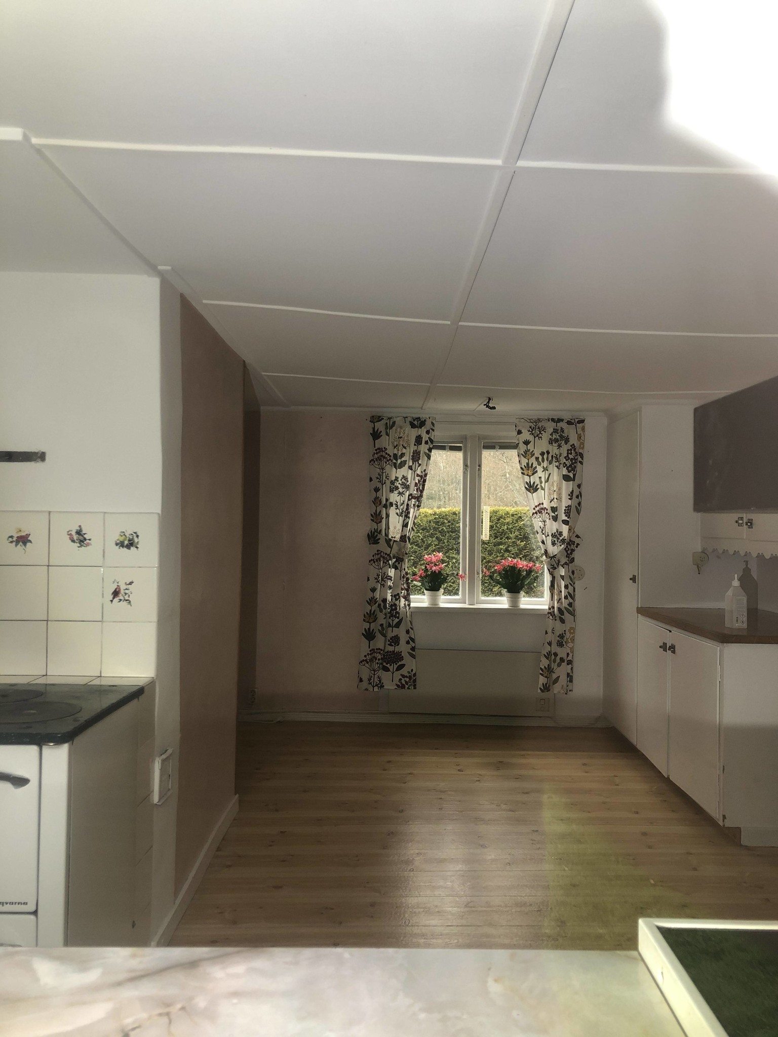 Bild tagen in i köket genom fönstret som syns på bilden ovan. Även golvet i köket ser här ut att ha buktat neråt. Bonusfrågan blir väl då huruvida det är stabilt och stumt, eller om det sviktar när man går på det..