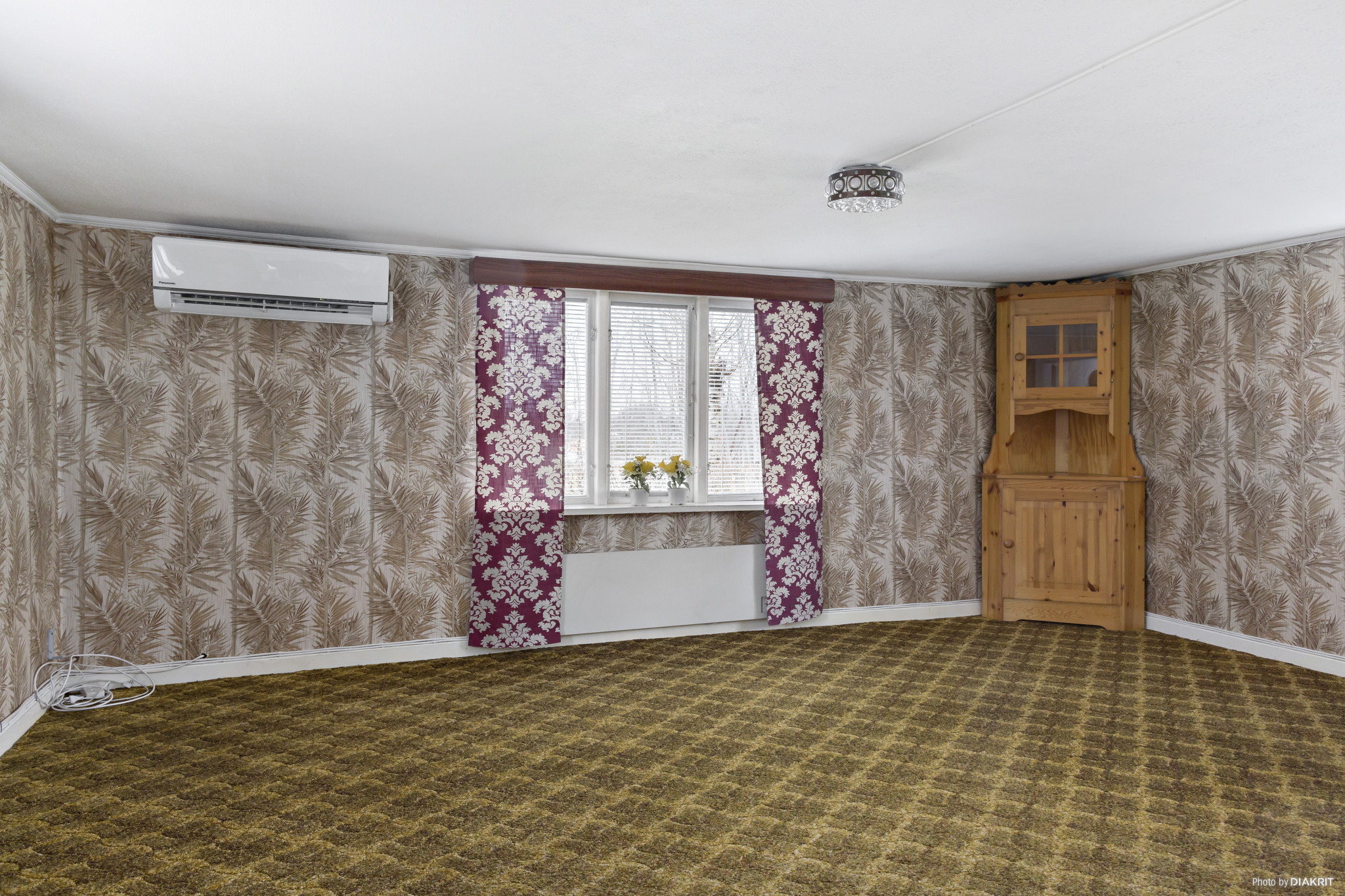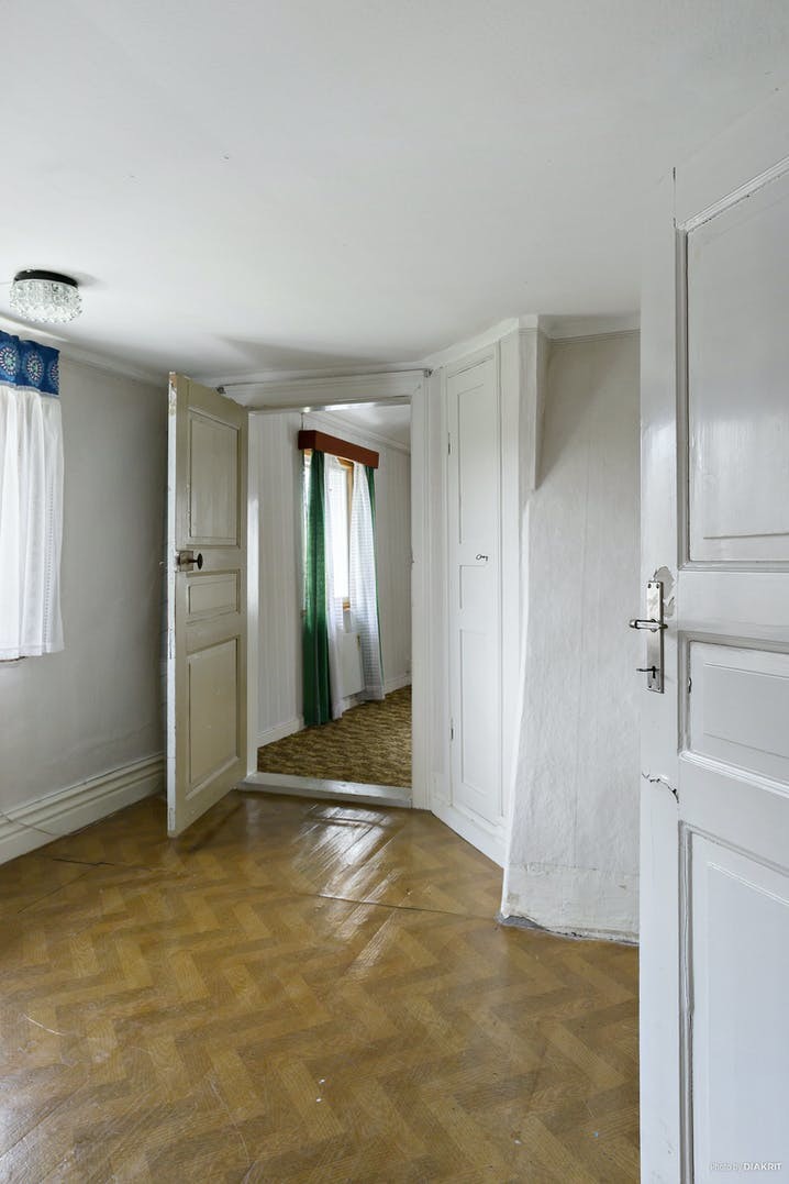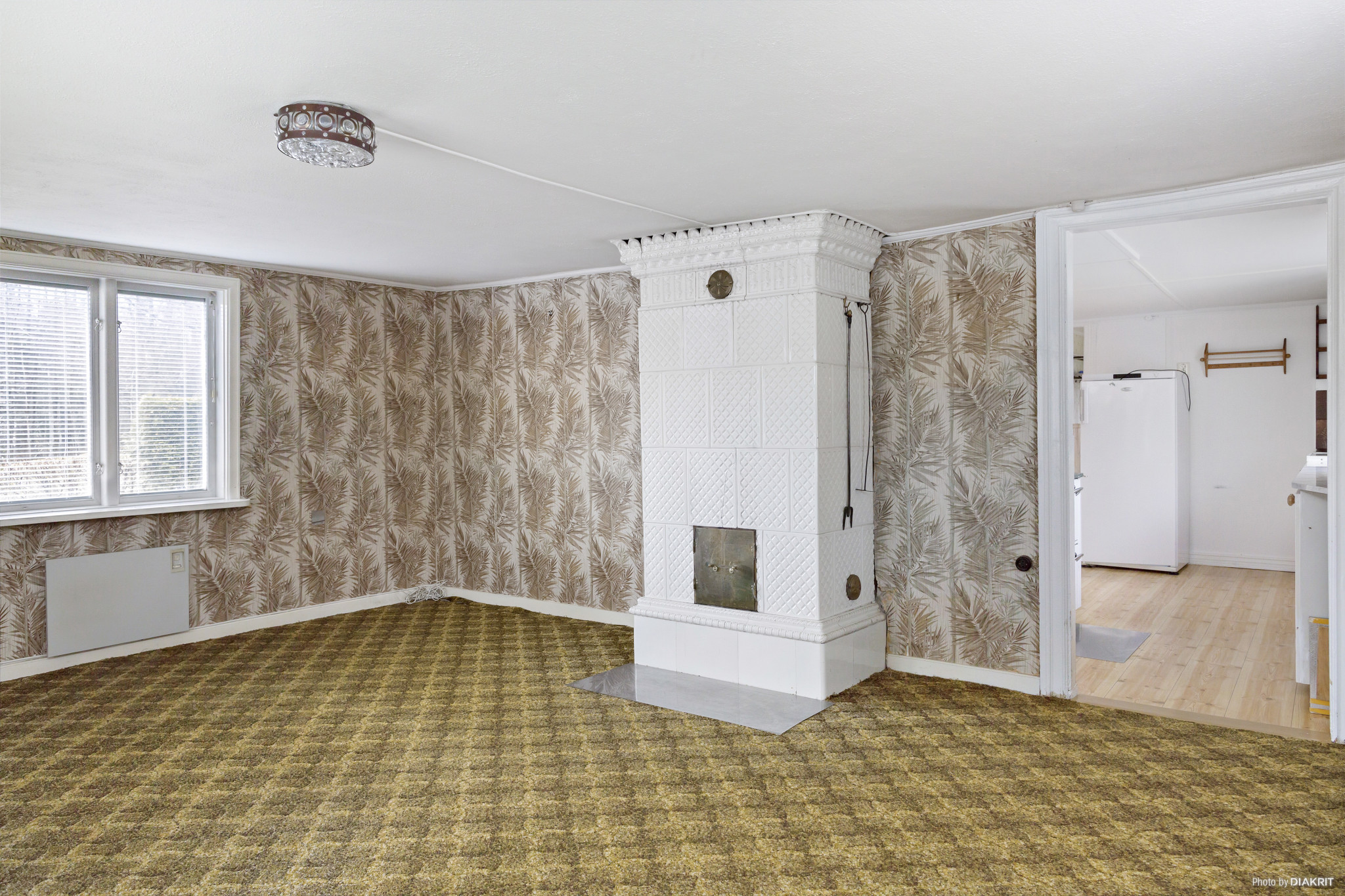 Vardagsrumet med kakelugnen (vars existens jag misstänker kan göra eventuella takhöjar/lyftarprojekt en smula mer komplicerad. Eftersom murstock finns så kanske det inte heller "bara" är att lyfta huset från grunden och lägga in "några stockar" för att få mer invändig yta den vägen: