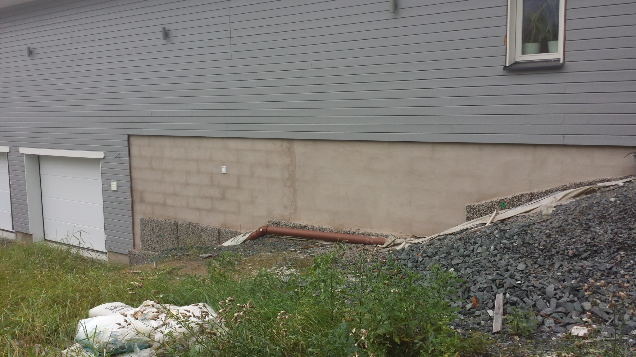 Bakom är det delvis uppvärmd källare, delvis ett hittills ej uppvärmt garage. Men gränsen mellan dem är inte den gränsen som syns utifrån.