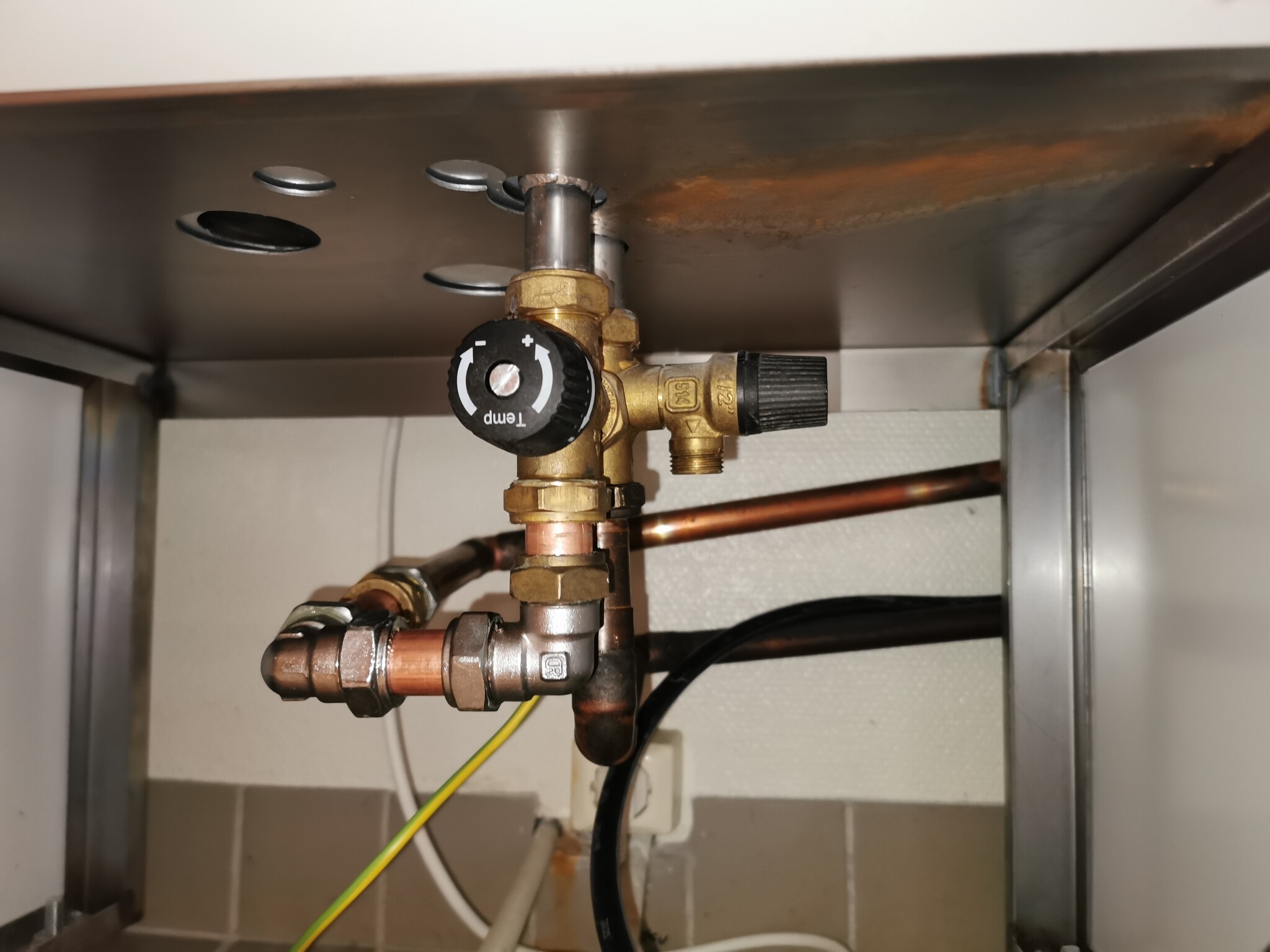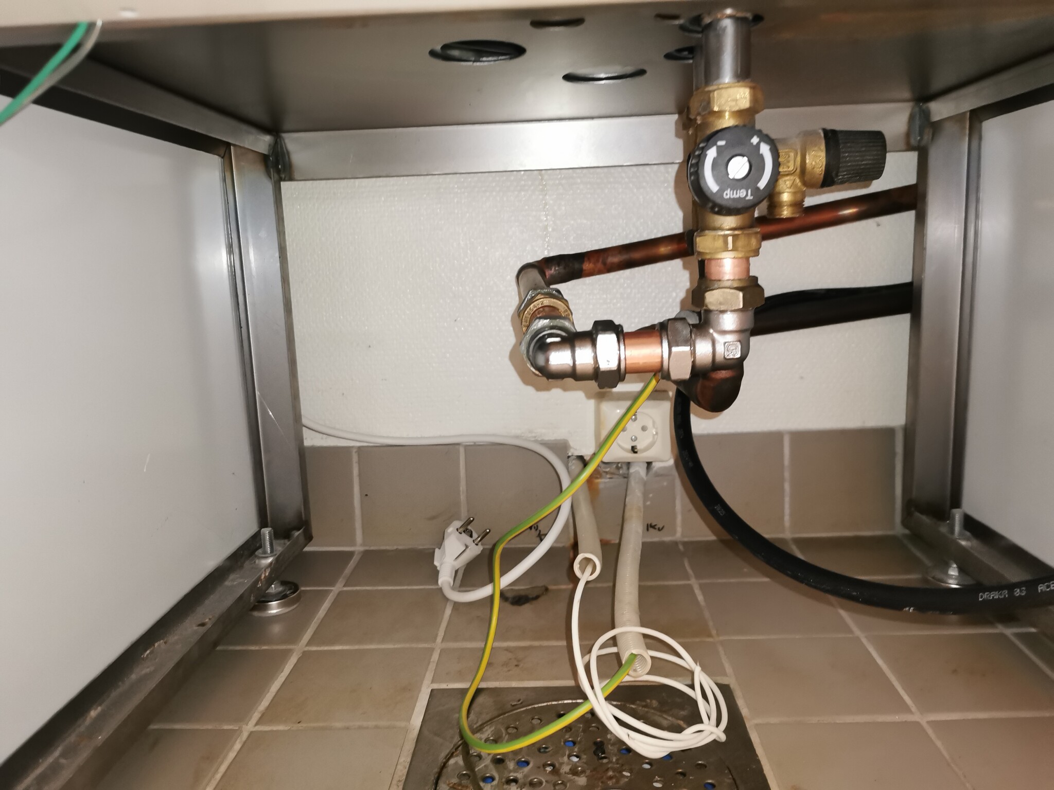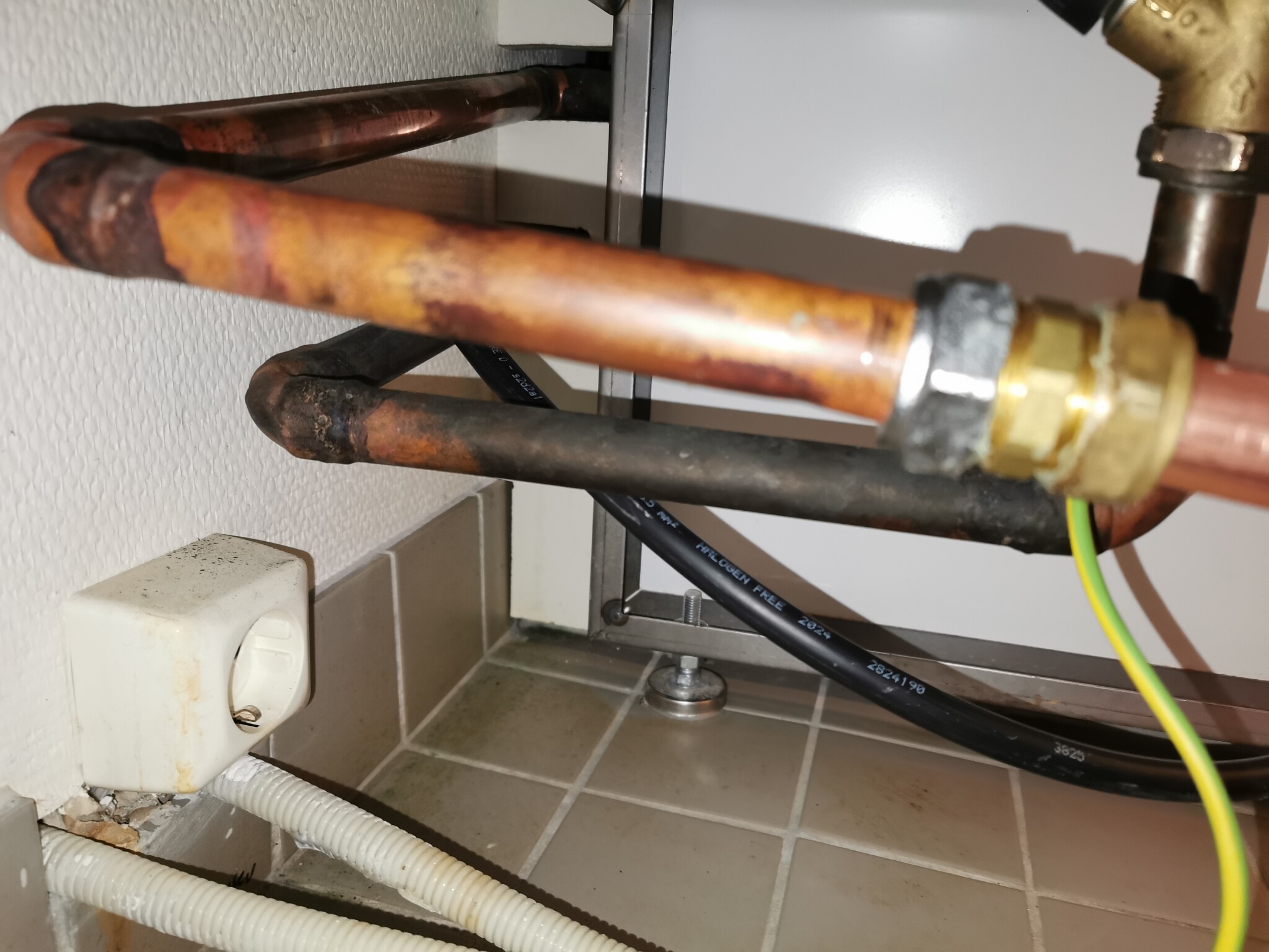Har installerat en ny VVB, de gamla rören var inte helt på samma ställe som den nya så man fick dra fram VV några cm med vinkel klämisar och KV kunde böjas till plats.