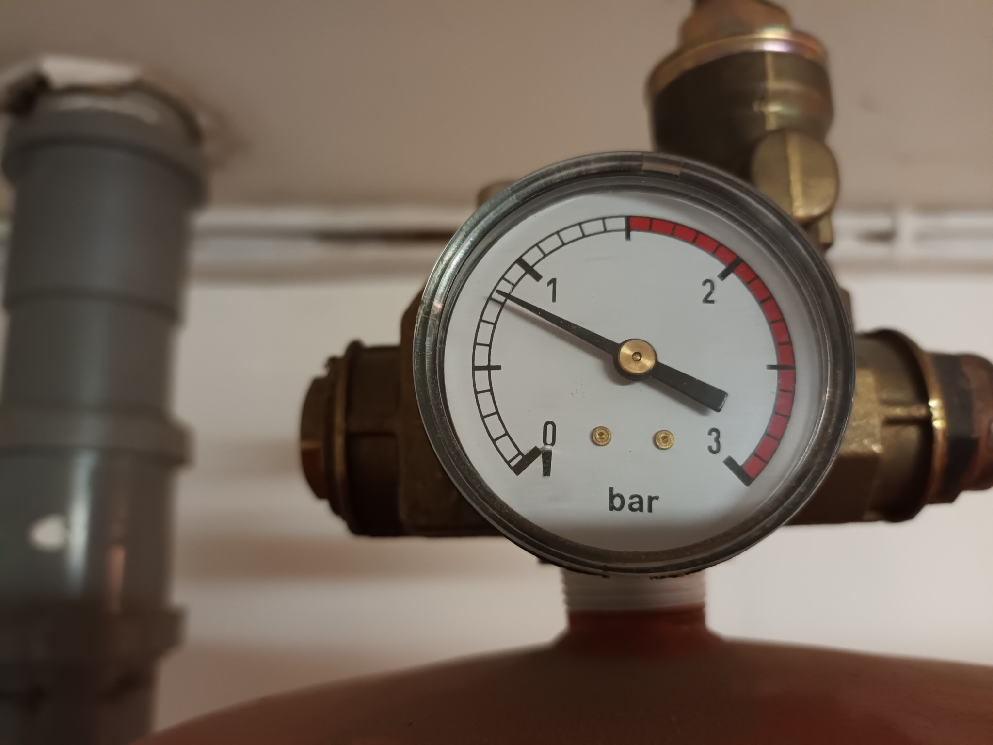 Har du ett tryck som faller även när temperaturen stiger i systemet så finns det anledning att leta läckage. Övervaka detta så du får lite känsla för vad trycket är vid olika temperaturer på vattnet.
