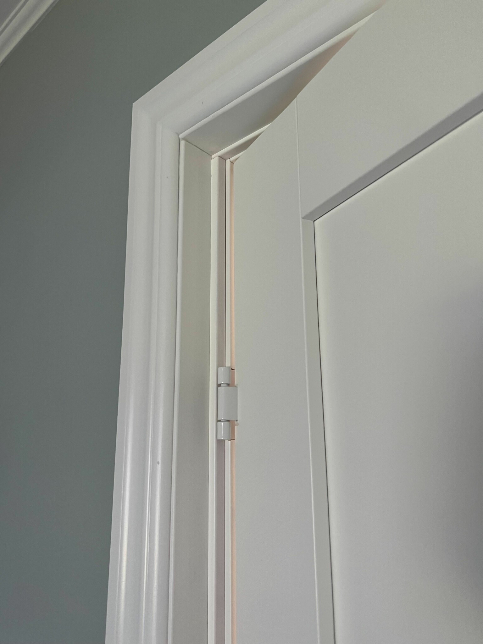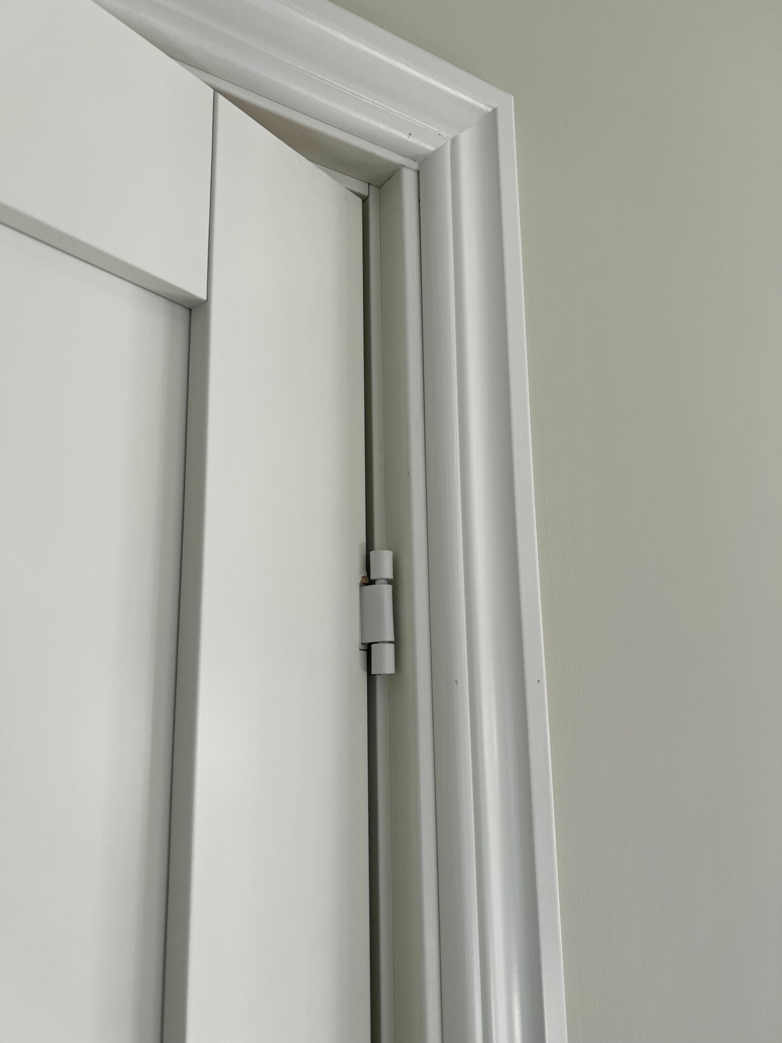 En av dörrarna är till badrummet medan den andra till ett sovrum. Väggen vid sovrummet är lite tjockare då ett rör till övervåningen går genom det. Vi ser dock ingen anledning till varför man inte satt dörrkarmen längre in/ut så man inte slår i fodret.
