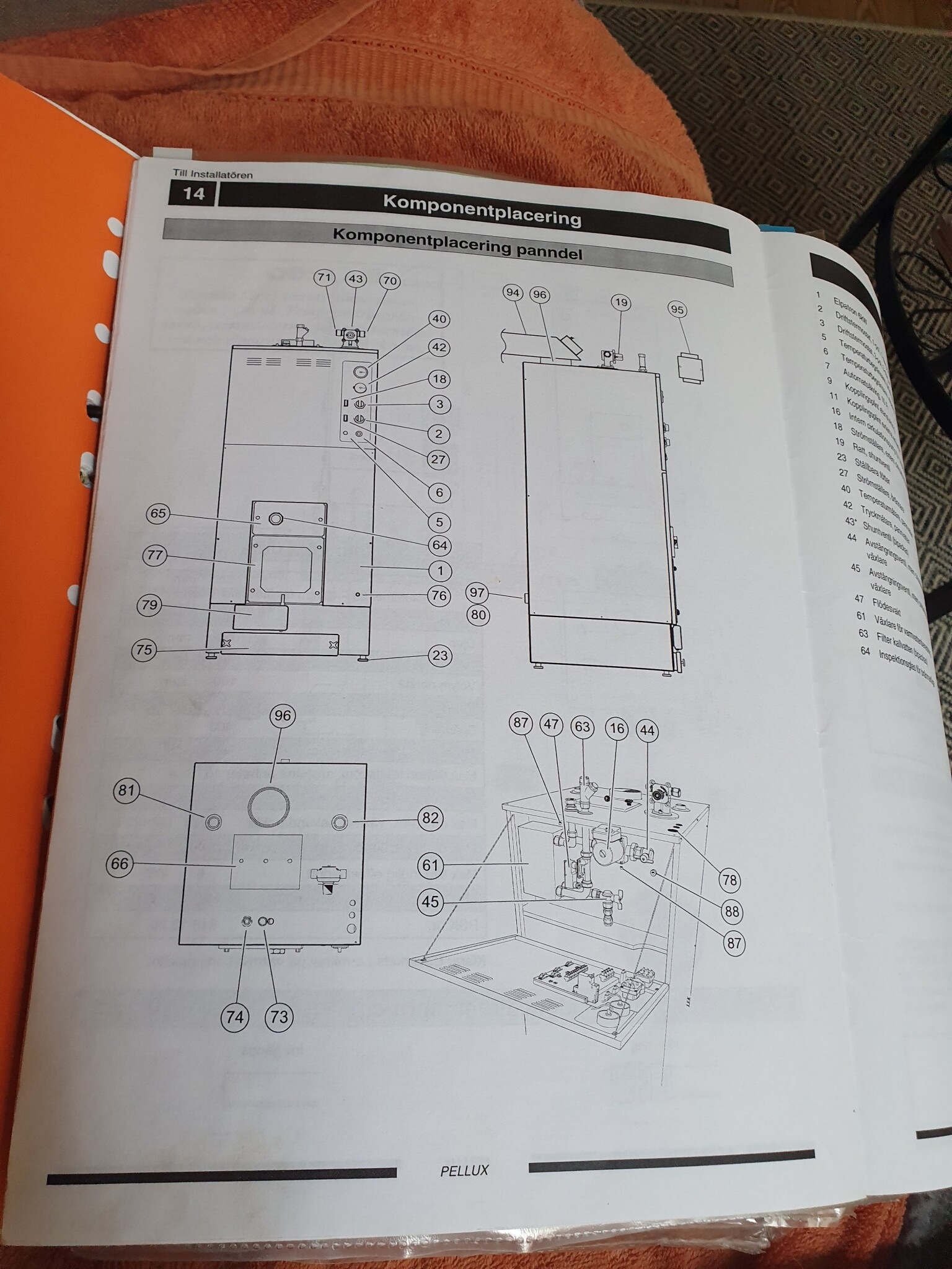 En Pellux värmepanna med intern cirkulationspump flödesvakt och värmeväxlare för tappvarmvatten.