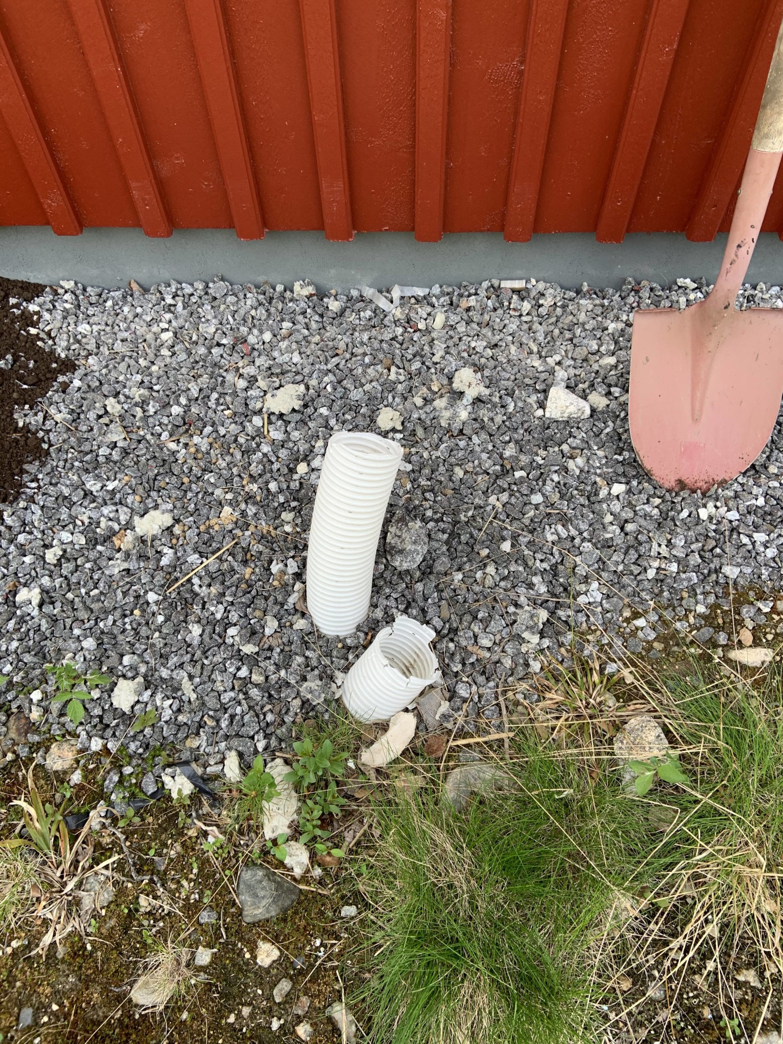 Men det sticker upp två dräneringsrör, varav ena är väldigt kort. Svårt att fylla matjord utan att det hamnar i röret.