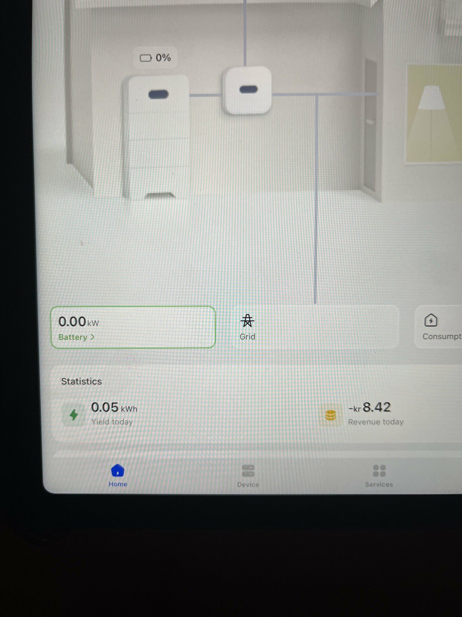 Jo det är en ny anläggning jag ser nu att den har börjat ladda ur batteriet så det verkar fungera!