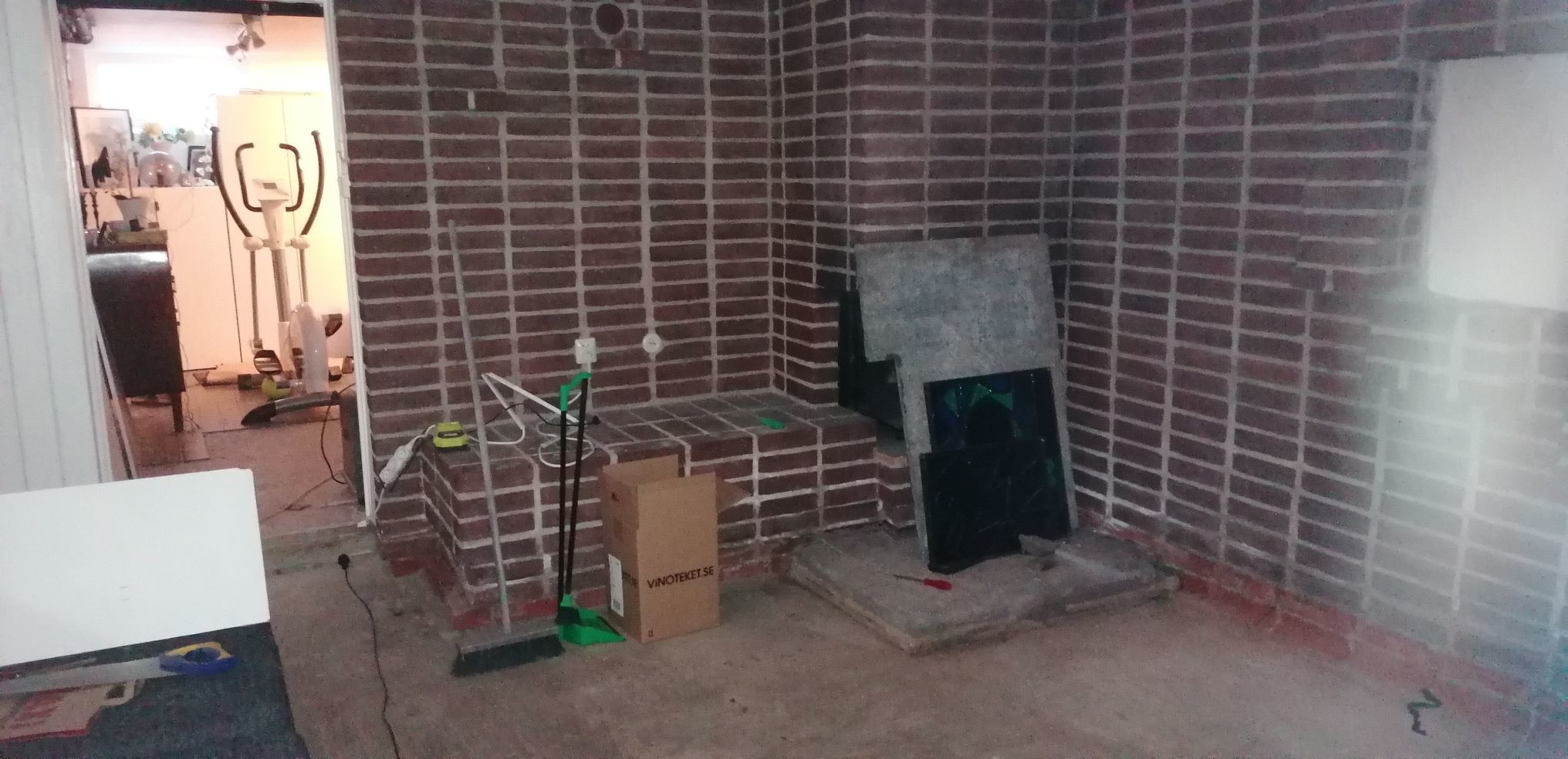 I Januari dränerade vi runt huset och isolerade med pordrän runtom. En av väggarna i källaren vätter dock mot ett större uterum, varför denna ej är åtgärdad utifrån (jag vet att det hade varit optimalt förstås, men så är faktum). På insidan här finns en extra tegelvägg som "innervägg".