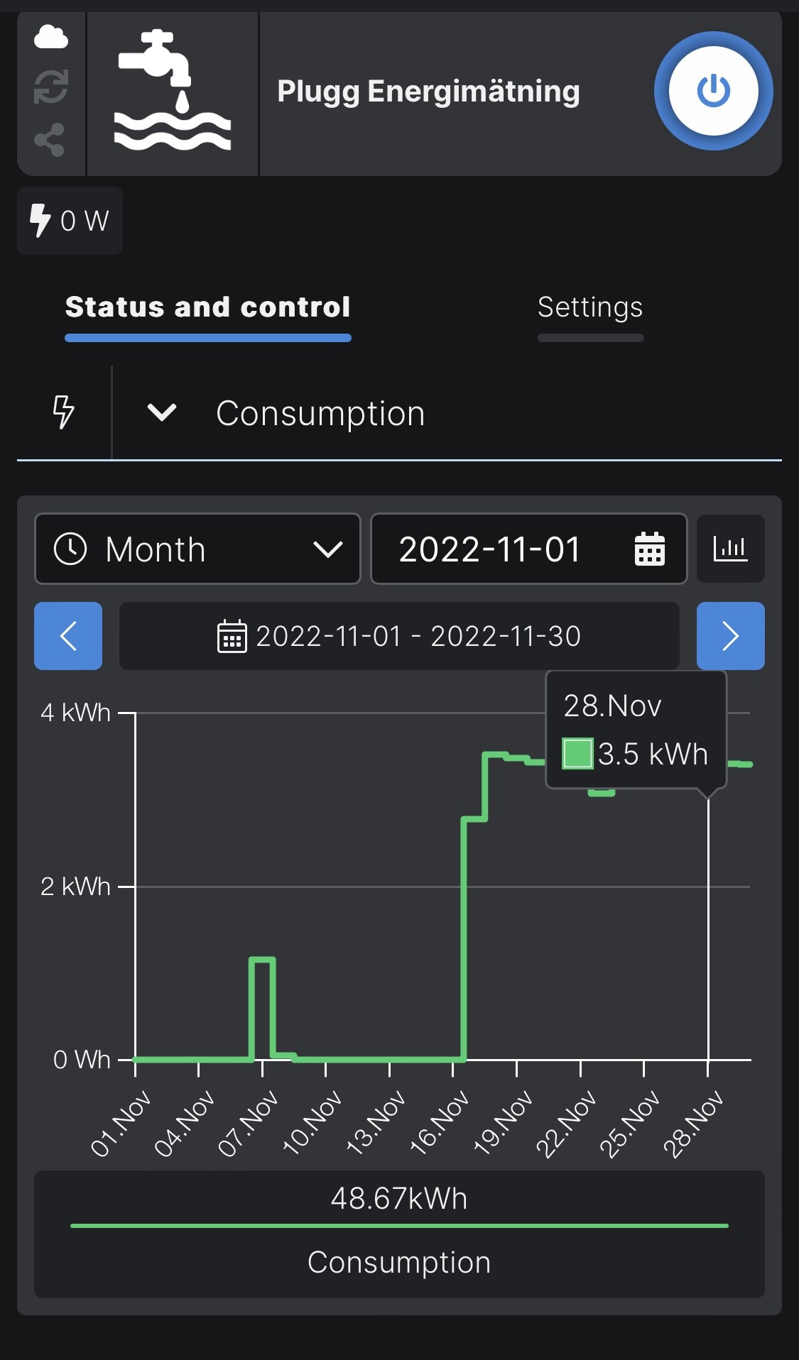 Ja det verkar vara en relativt normal förbrukning jag har men jämfört med att jag gör av på en 40 graders tvättmaskin ca 1,2 kWh så känns det nästa horribelt att en värmekabel för att bara vattnet inte ska frysa år 2022 drar ca 3 ”tvättmaskiner” dygn.