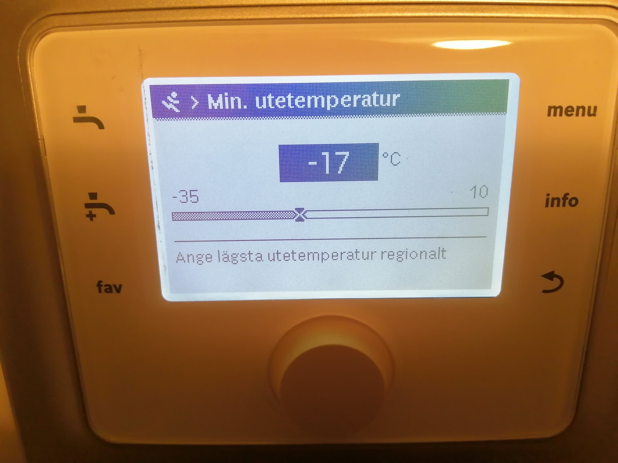 du behöver bara ställa in det en gång. En gång när det är kallt ute - då justerar du min. Temp.B Borran87 skrev: