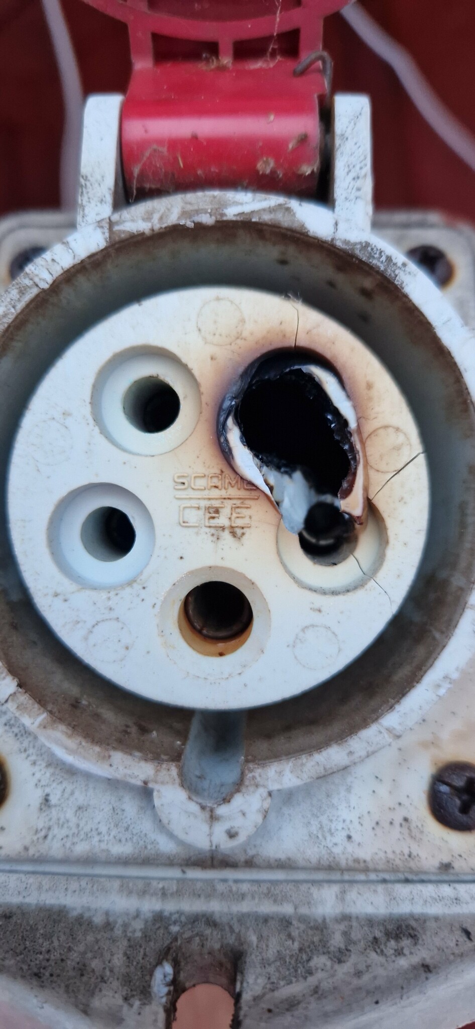 Byt i så fall ut det mot ett modernt CEE uttag. De gamla Semko uttagen är förbjudna idag, på goda grunder.