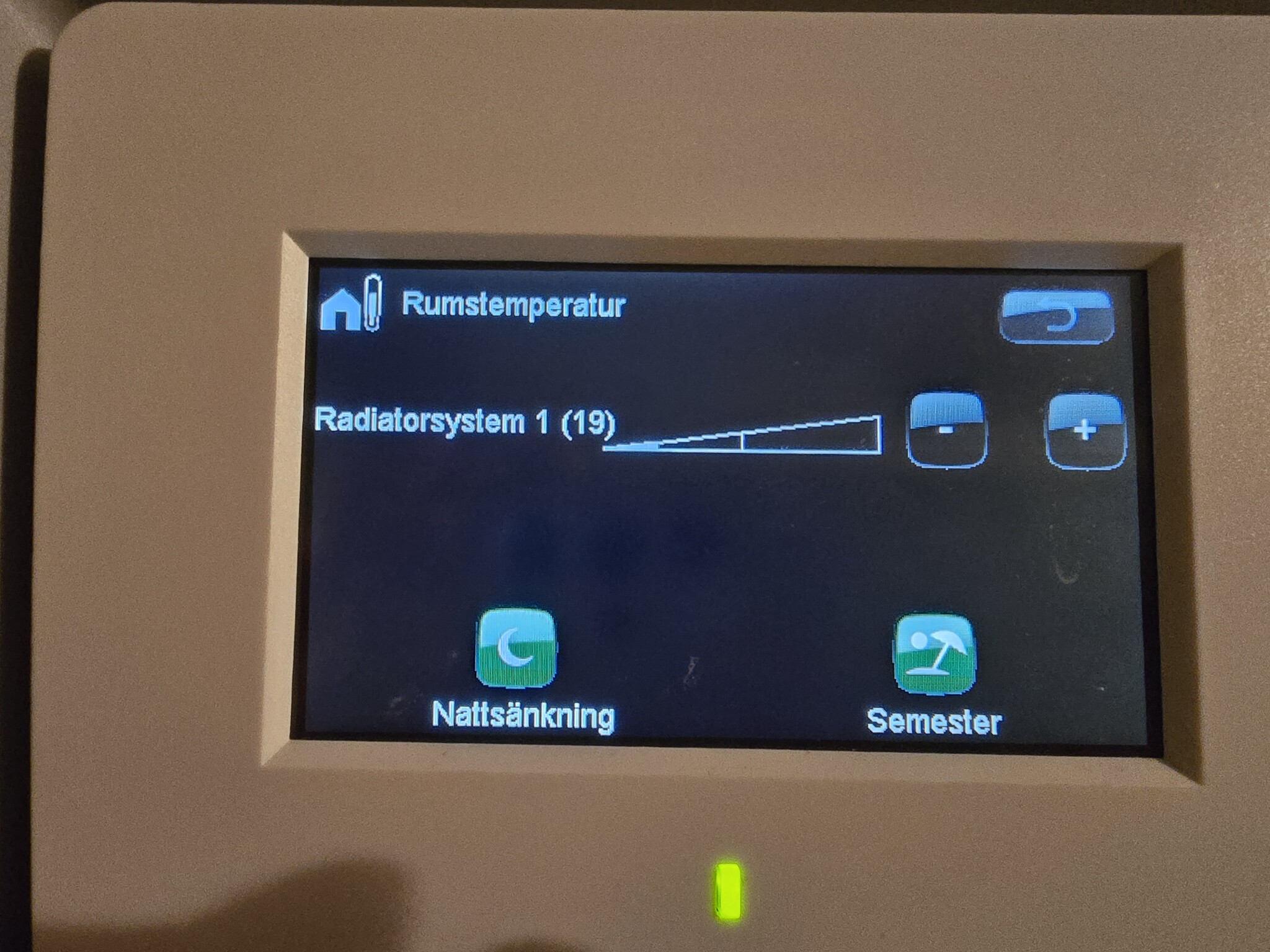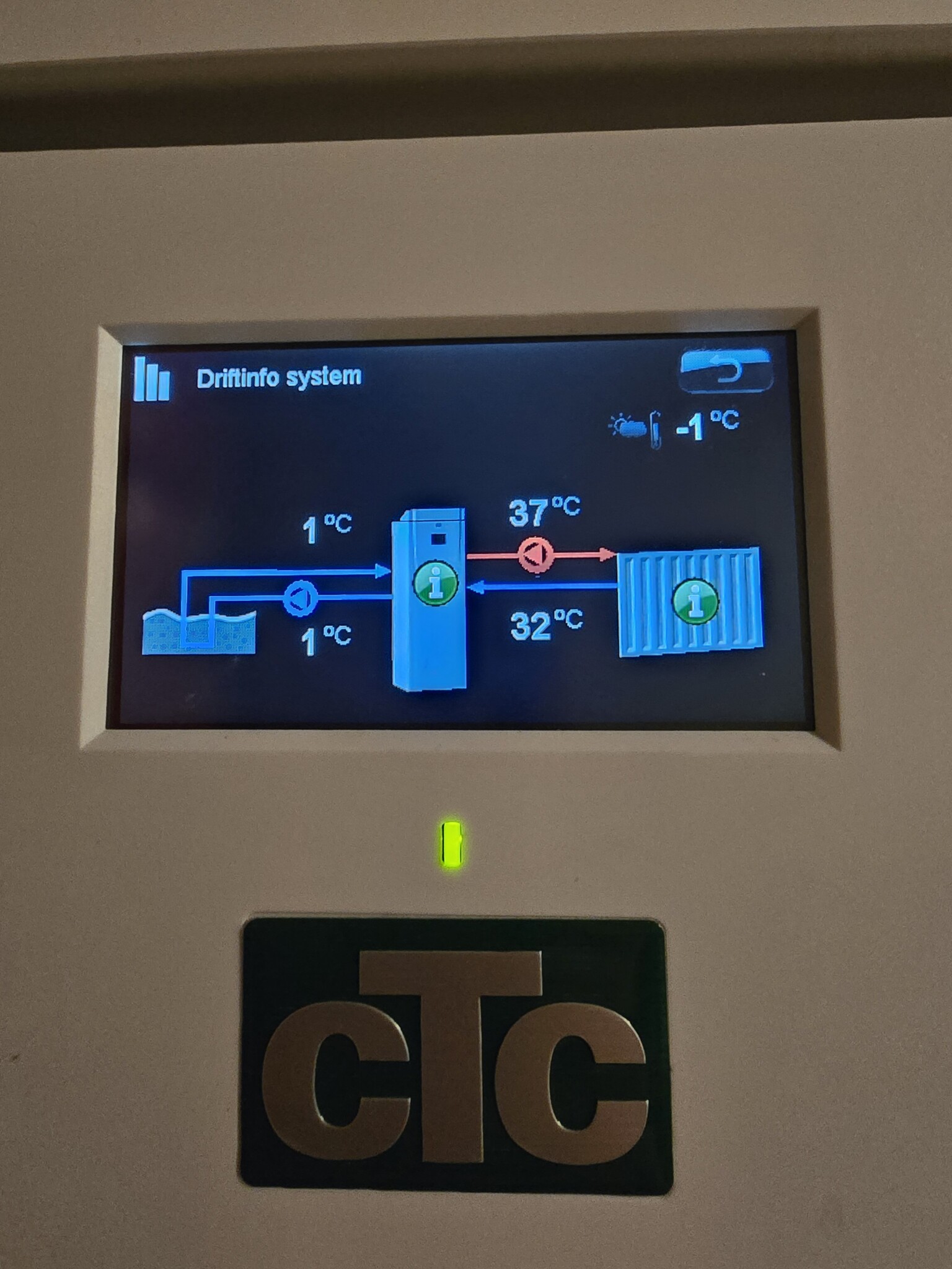 Flyttat till souterränghus från -76 på 119+106kvm varav bara garage är ouppvärmt. Energiklass B med bergvärmepump ctc ecoheat 400(tror jag), eldstad o ordentligt tätt. Har under 1.5mån pillat o ändrat på pumpen för att det är för varmt men hur mycket jag än sänker så är det fortfarande varmt. Höjt elementen från 3 till max (5) i alla rum (förutom sovrum som är på 0) just för att jag läst att det ska va på pumpen man sänker o inte element. Idag ändrade min man cirkulationspump från 1 till 2 men som jag förstår hjälper detta bara när det är för kallt inne?