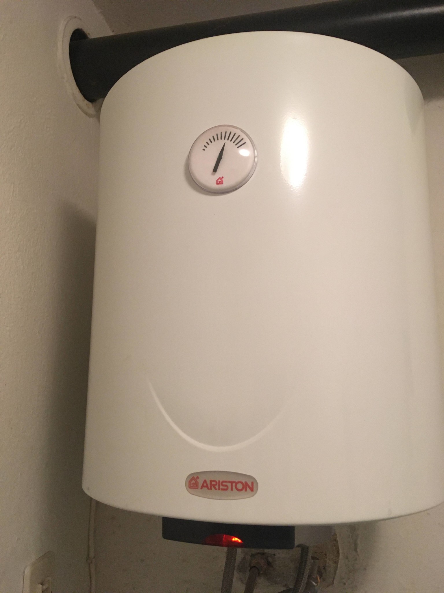 Ser nästan ut som Tesy i formen. Den stora svarta runda som sitter under kan skruvas bort , innanför där sitter termostat och överhettningskyddet + elpatron. Är det ingen markerig vid rören som röd och blå. syns inget hur gammal den är. Vet inte och är osäker på hur dom är invändigt , det kan vara en pexslang som går till topp där uttaget dill VV är , har den släppt eller gått av nära botten så blir det den effekten. Känn på rören under VVB när du spolar vatten , normalt så är det vänstra varmast , är det hett och blir kallt så är det rackartyg invärtes på den ,inte lönt försöka repa utan en ny är bäst.