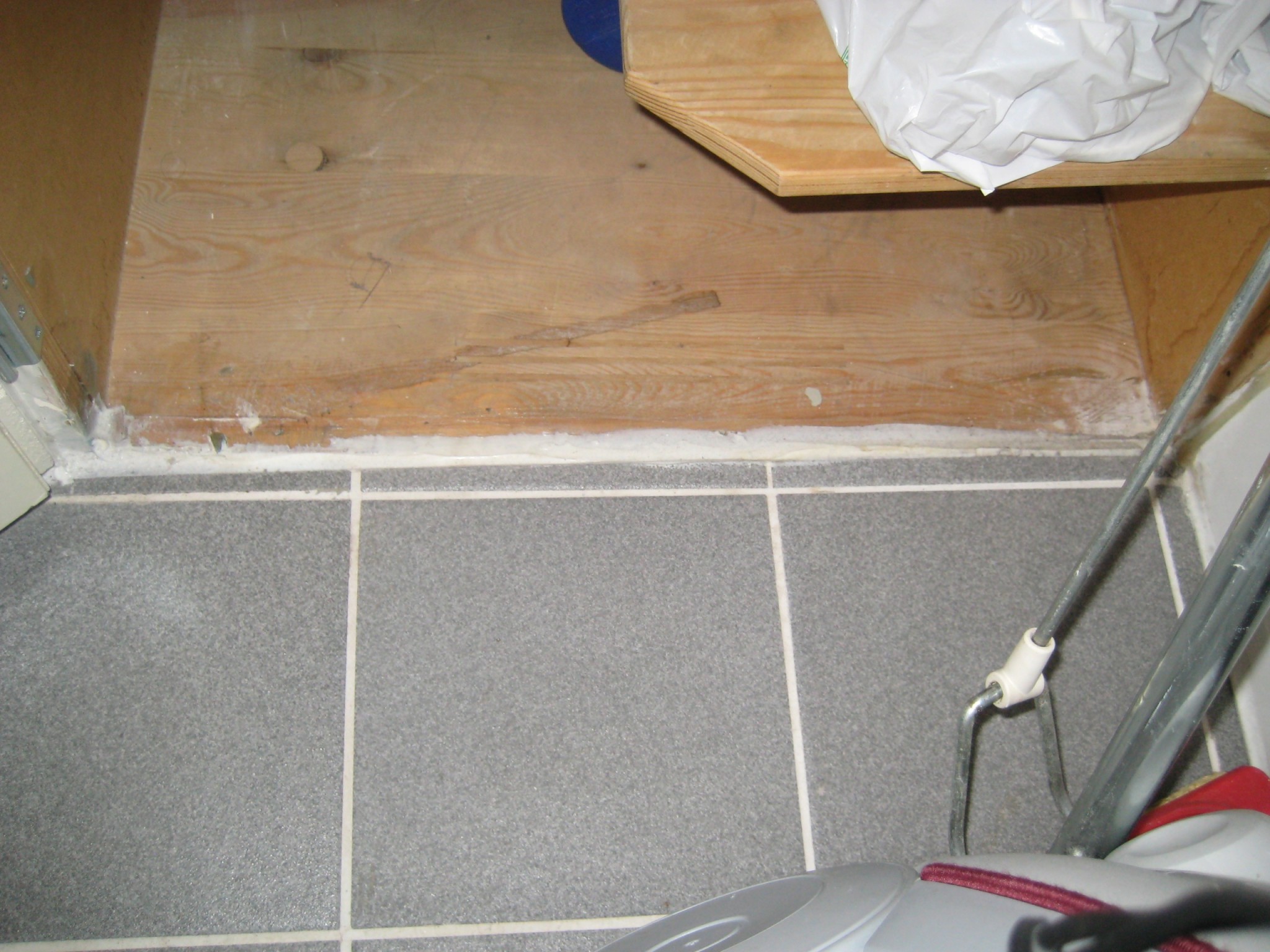 Det ser dessutom ut som om klinkern ligger i liv med golvet i garderoben (saknar förhöjningströskel) vilket är en ytterligare risk för att vatten rinner in i garderoben och orsakar skador under kakel och klinker.