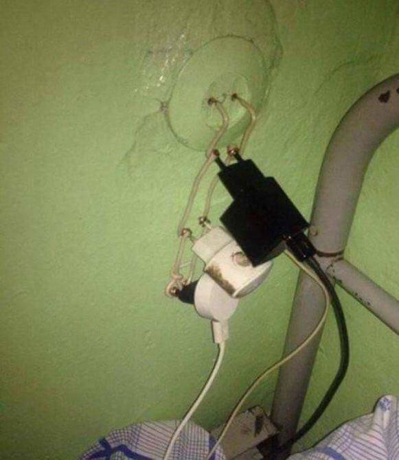 Säg inte det. Man behöver inte åka så långt för att hitta "kreativa" lösningar på vardagliga elektriska små problem, jag har sett liknande skapelser i tex Spanien.E erkka skrev: