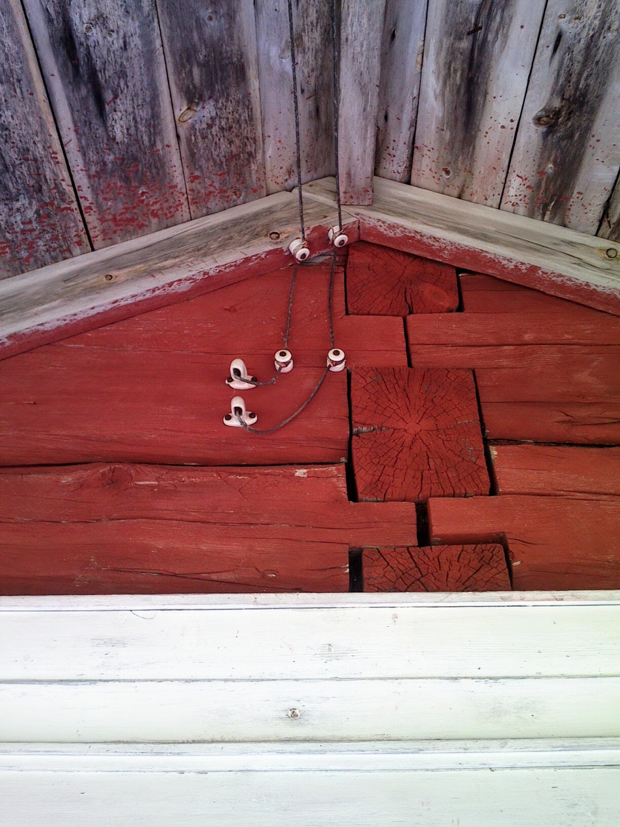 Det var lite tillfälliga dragningar slarvigt uppklamrat på staketet runt en byggarbetsplats (det vita är ett sånt där nät mot insyn och skräpspridning uppspänt på byggstaketet), el som gick till någon strålkastare, elektrisk portgrind och kortläsare och sånt.