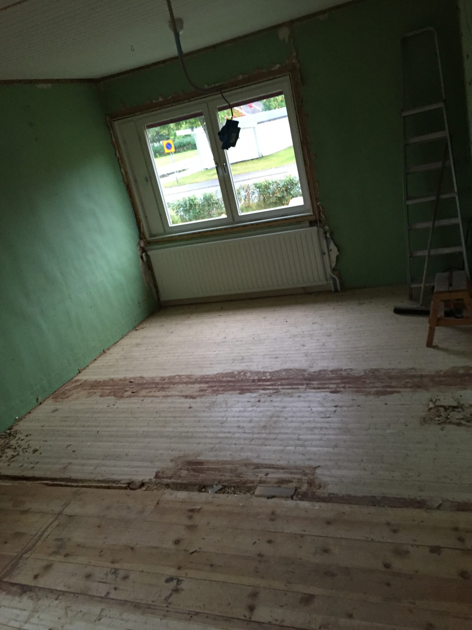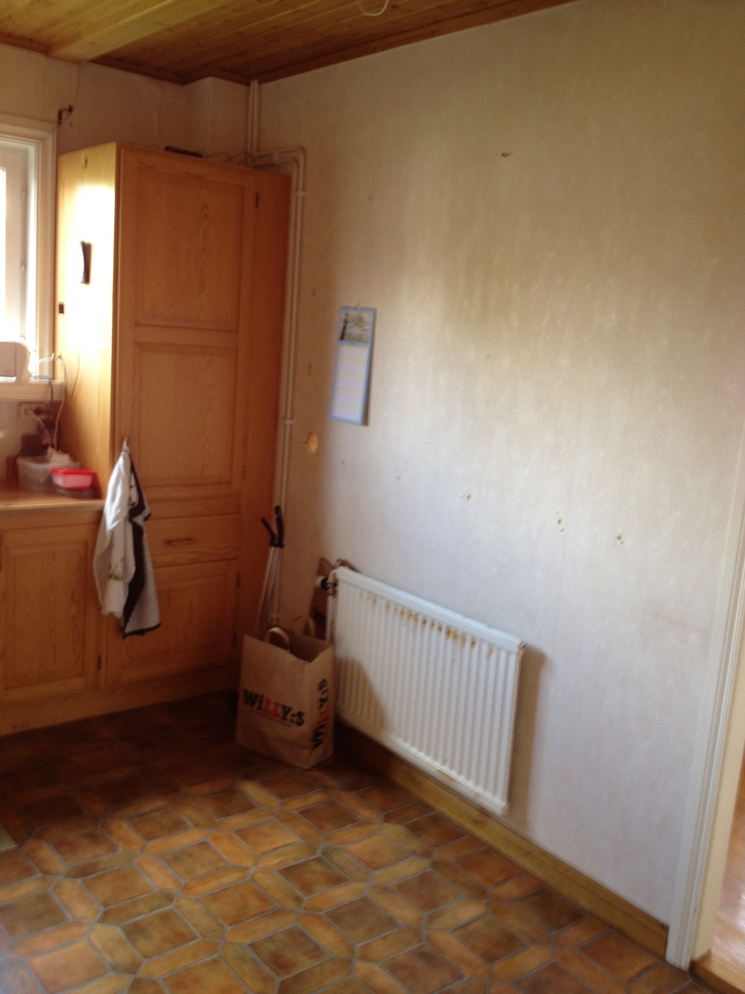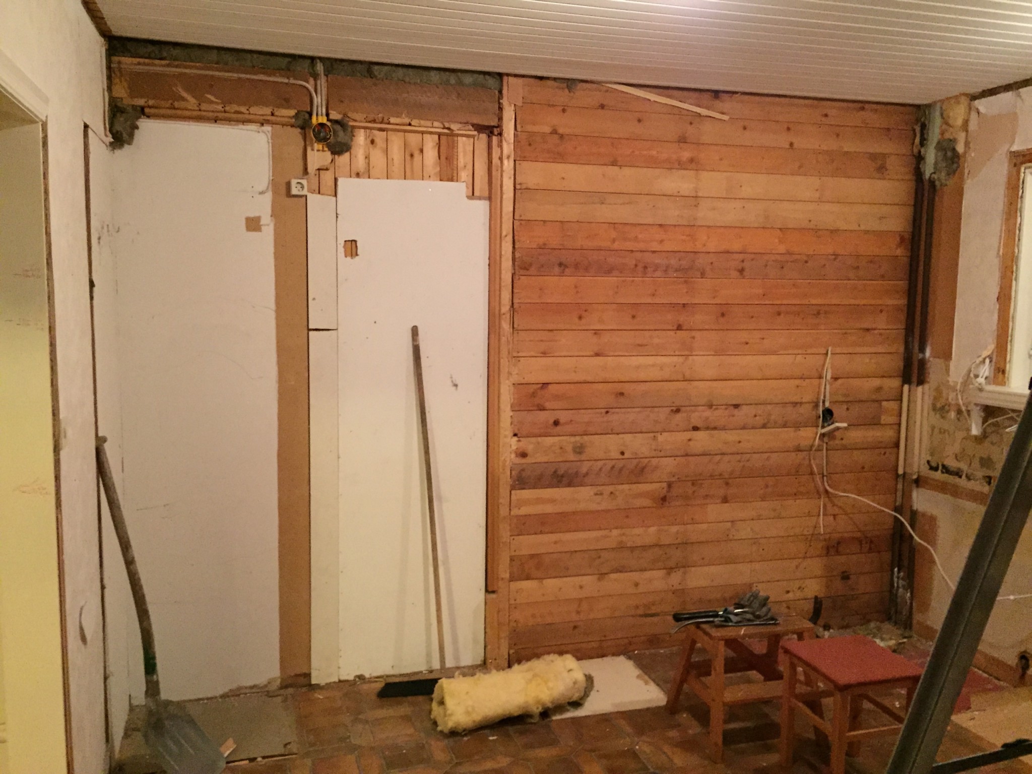 Nu har luckorna fått sig färg och väggen mot rummet bredvid är på väg ner/nere.