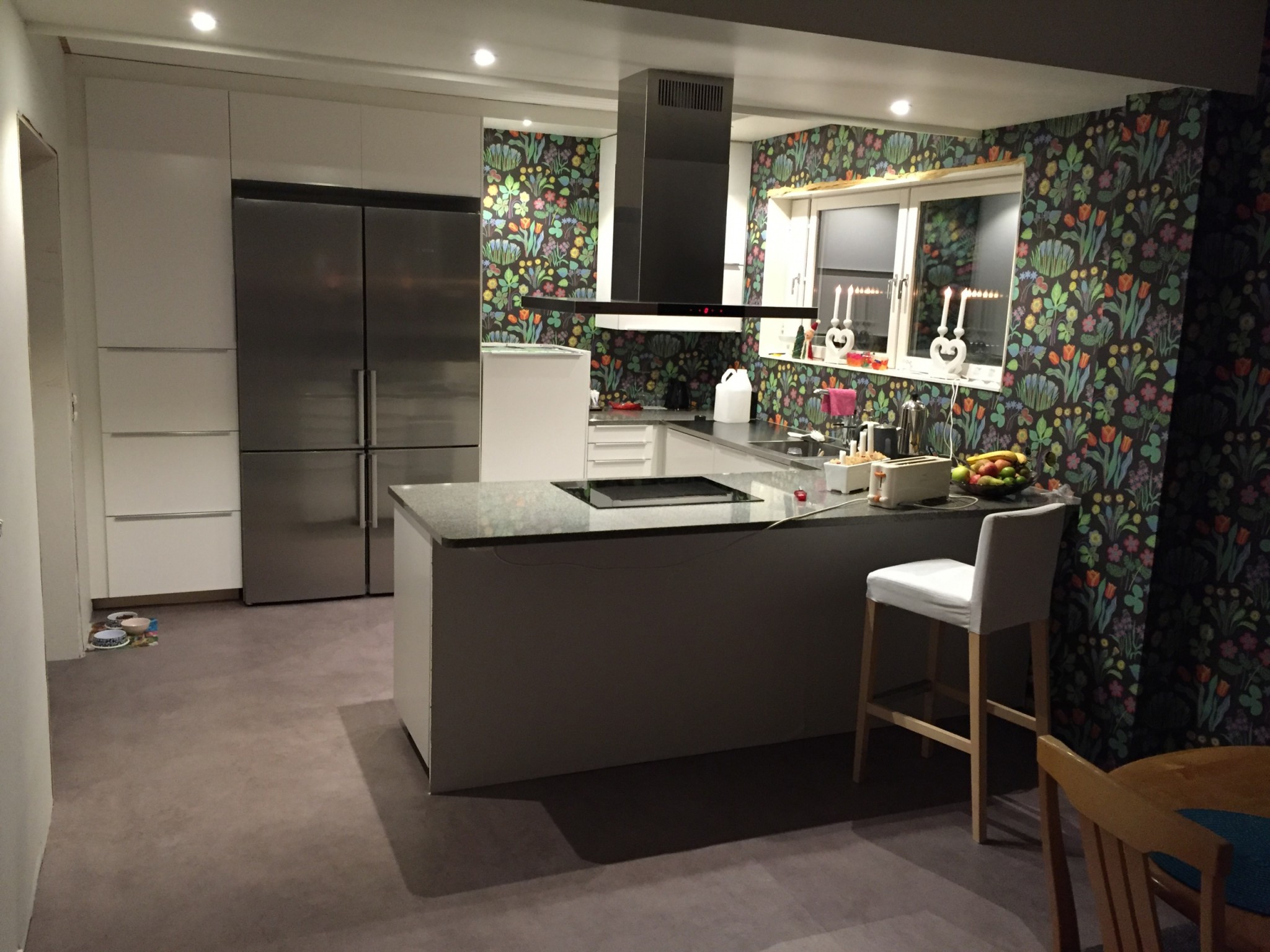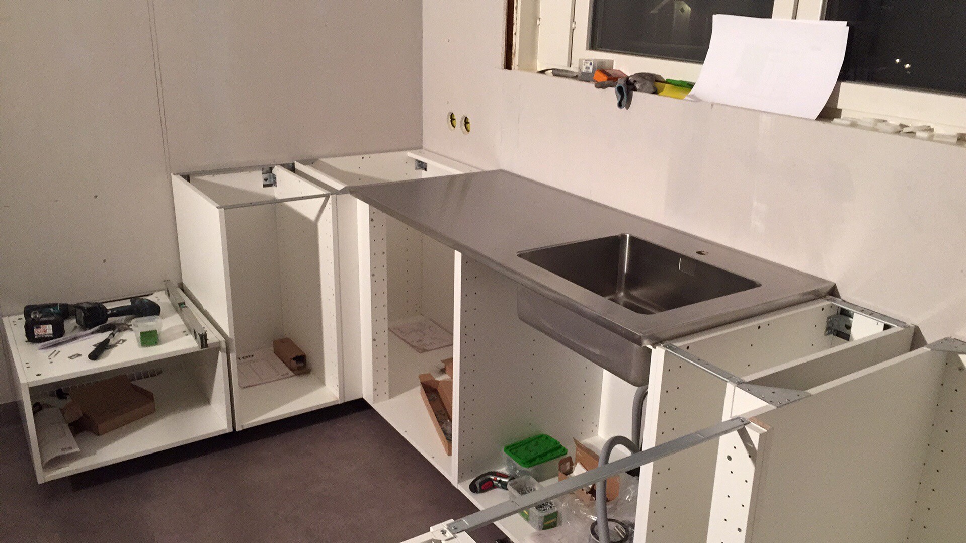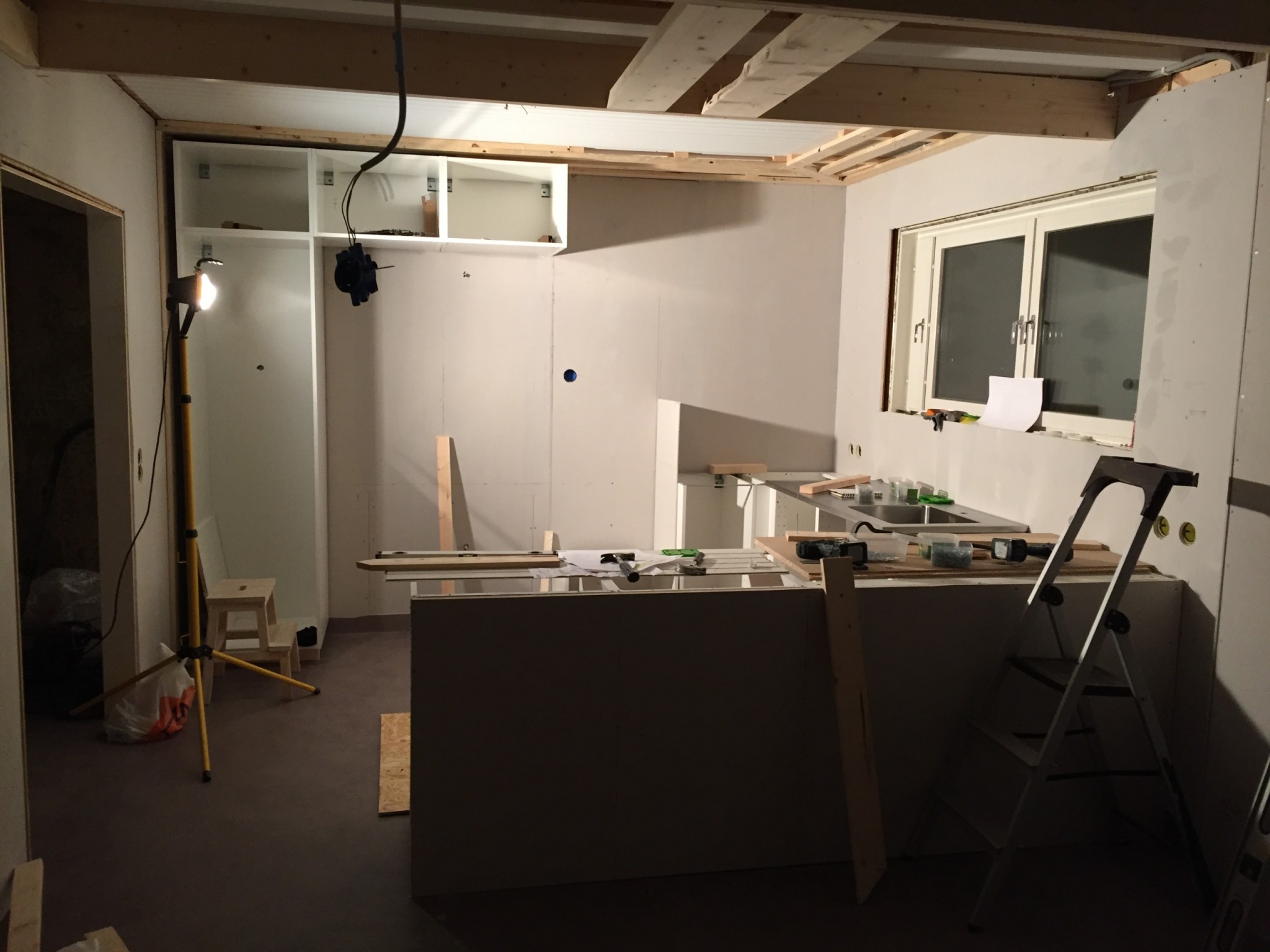 Det färdiga resultatet! Fattas lite lister, köksglaset och några eluttag.
