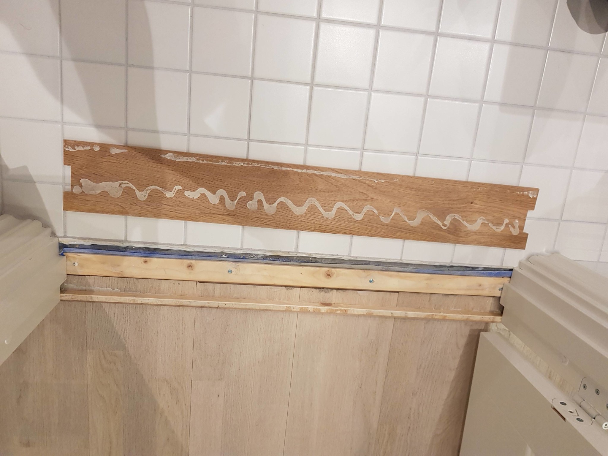 I annat fall får man försiktigt försöka plocka upp den raden klinker som ligger närmst tröskeln och sen försöka skarva på tätskikt och vika upp mot en ordentlig tröskel, men det är inte jätteenkelt för en lekman och inget jag rekommenderar folk att ge sig på.