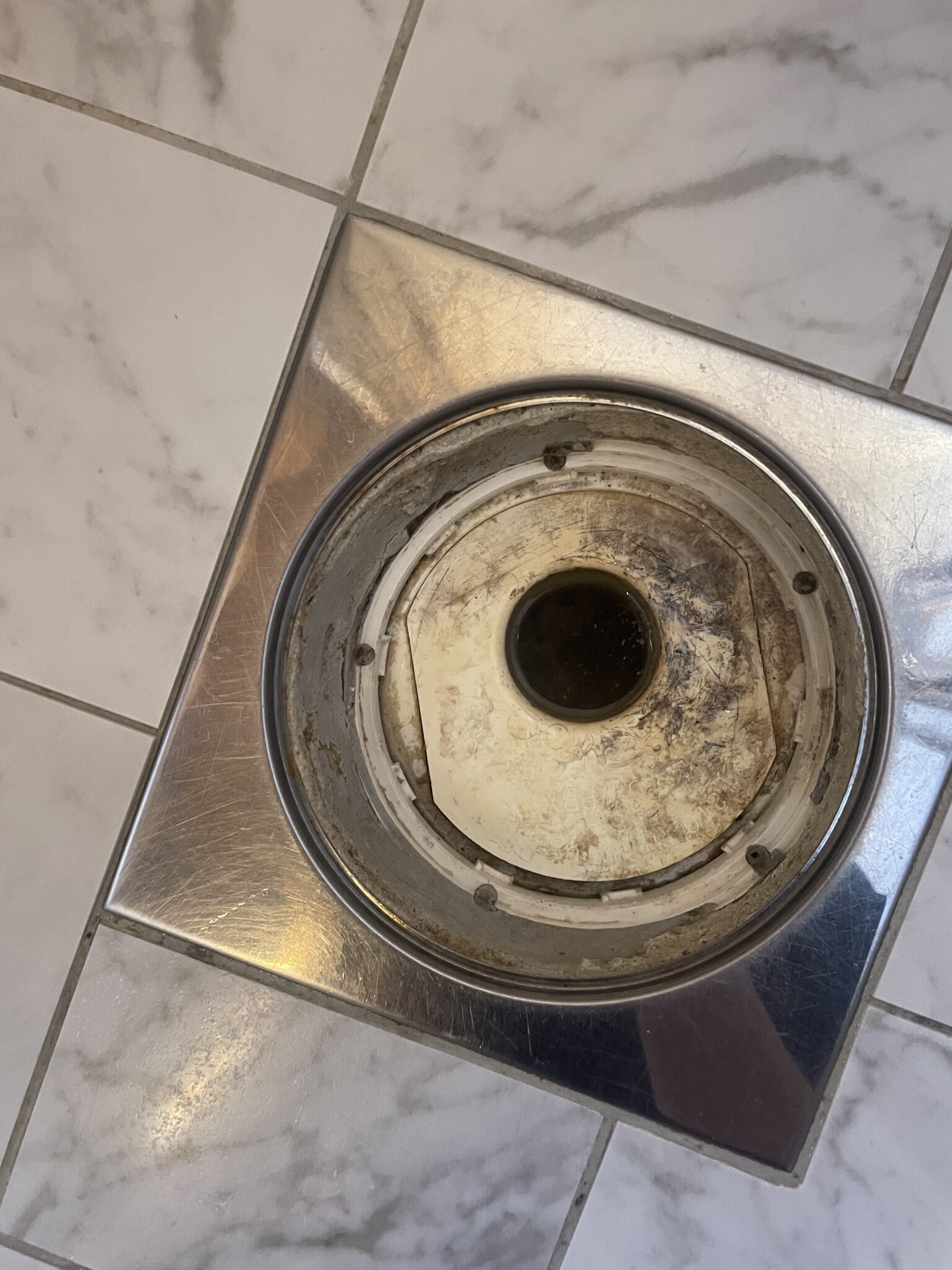 I min värld ser det ut som "sista vattnet" efter en dusch som står kvar och det är inget konstigt alls då det finns något som heter ytspänning och brunnsilen är plan så det är inget märkligt alls att inte det sista lilla vattnet tar sig ner i brunnen.