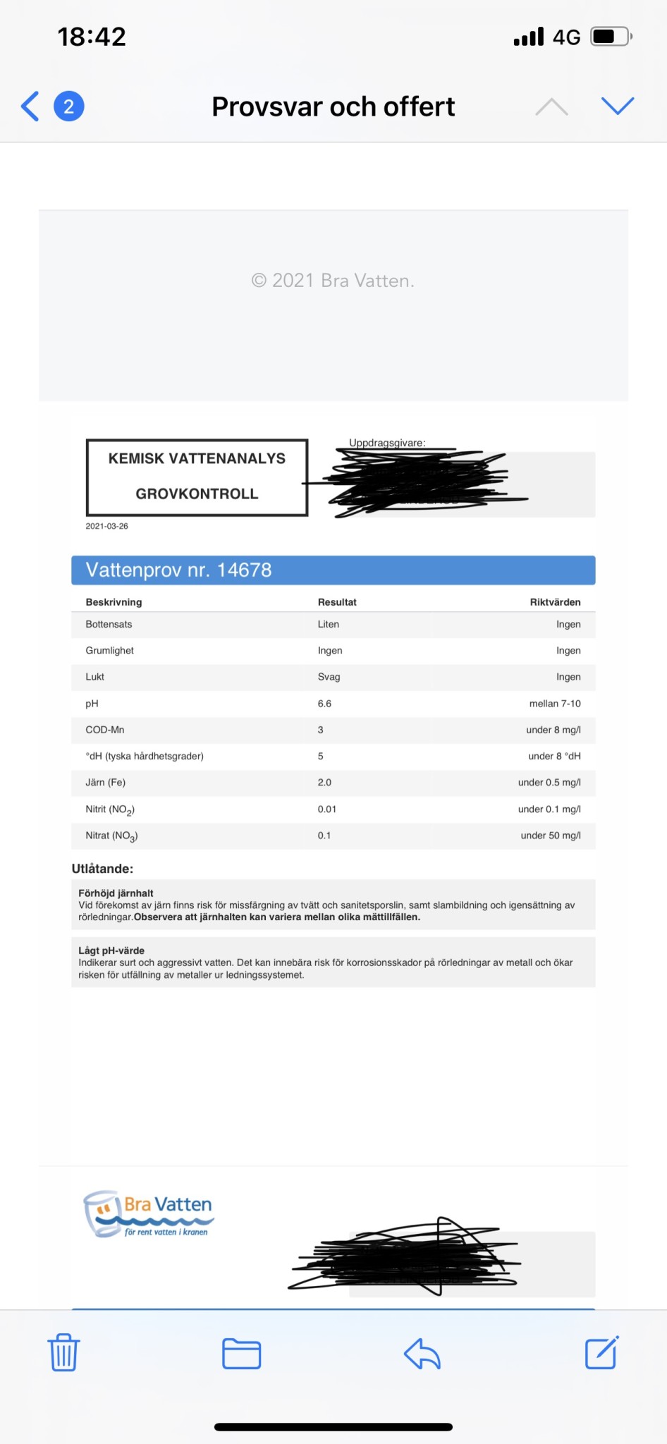 Här är svaret från Bra vatten, har även gjort en analys som kommer komma nästa vecka från eurofins. Har bifogat bild på offert, har någon erfarenheter från företaget? Känns priset rimligt för filterna?