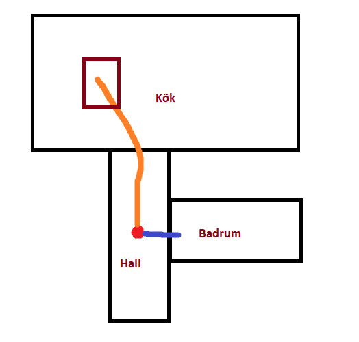 Köket är över pannrummet och badrummet över tvättstugan, så på så sätt behöver jag inget fördelarskåp i badrummet då jag sätter fördelaren i tvättstugan. Kommer alltså dra fem rör/slangar från tvättstugan upp till badrummet.