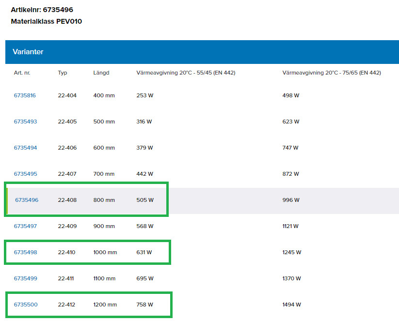 Ser det rimligt ut? Tyckte det var så stor spridning på vad de valda radiatorerna levererar för W/m2 i de olika rummen.