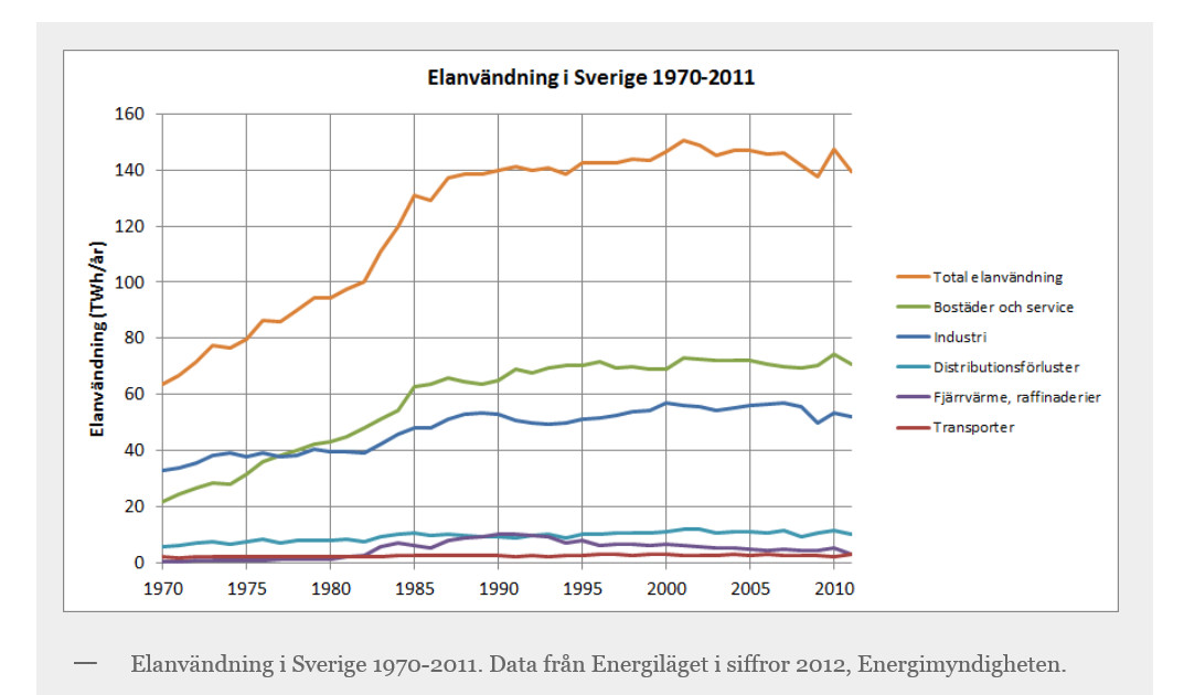 Nja den har legat rätt platt sedan 90-talet men vi hade den absolut högsta elförbrukningen i historien 2002 och därefter minskning de senaste åren b.l.a beroende på minskad industri i Sverige.larsbj skrev: