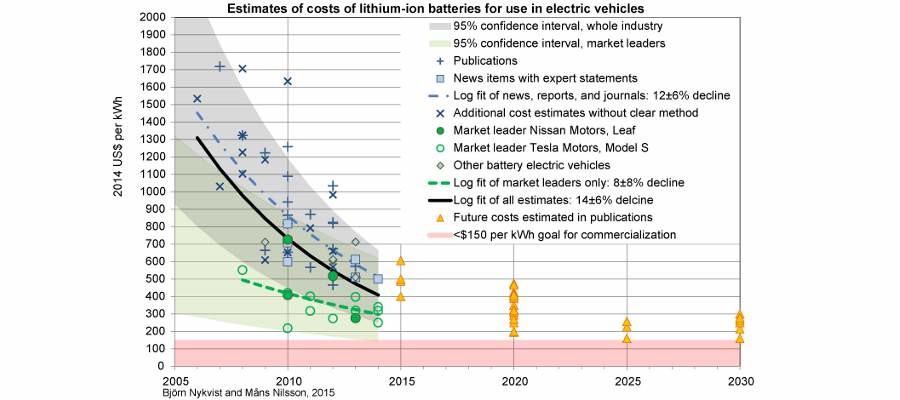 Batteritekniken utvecklas också snabbt och priserna faller fort,de senaste 10 åren har priserna på elbilsbatterier sjunkit med 75%. Och tesla kommer snart med ett fastighetsbatteri.