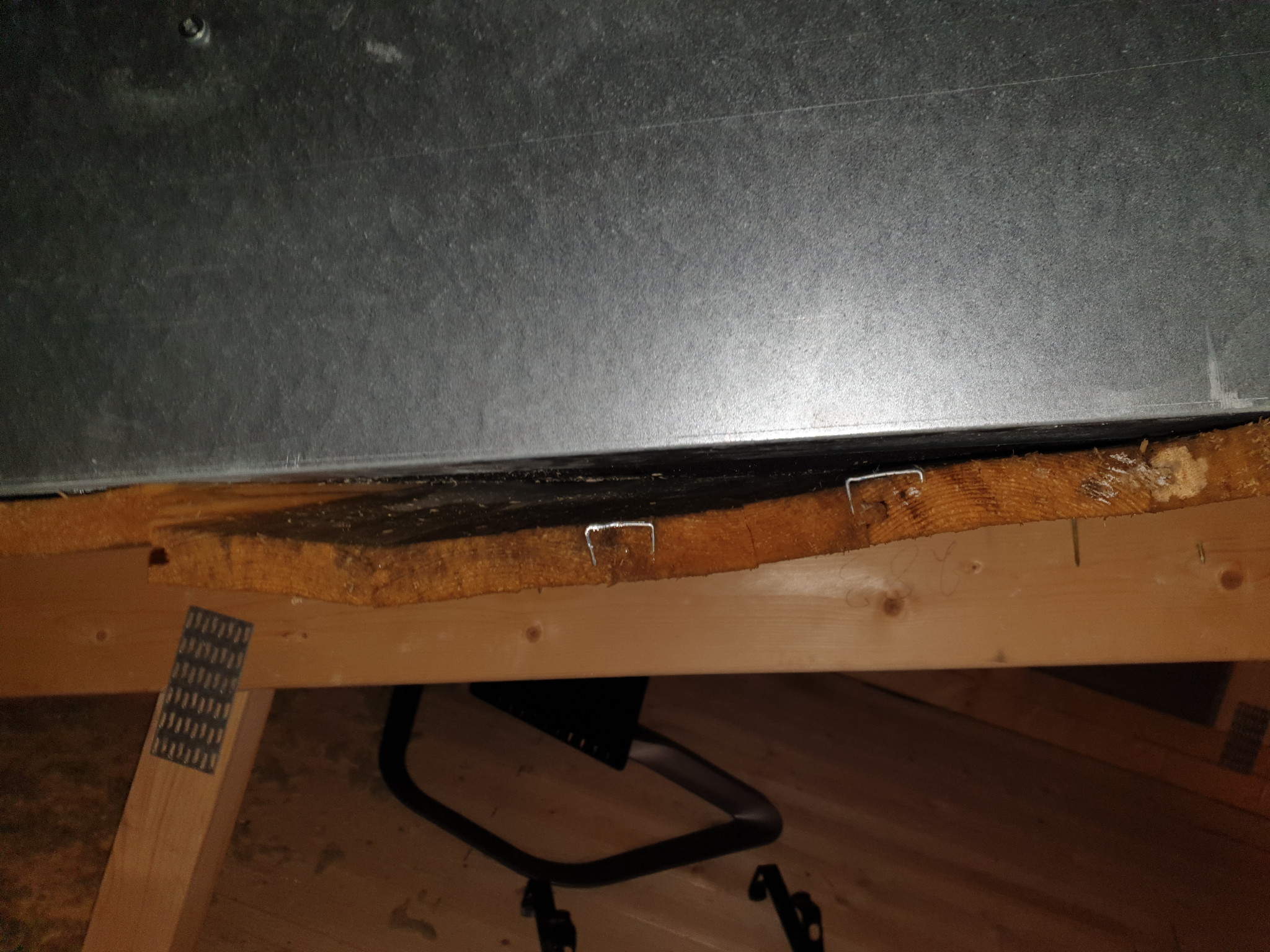 Vi skulle ta ner några grejer från vinden när vi insåg att det läcker ner vatten från plåtluckan i taket.