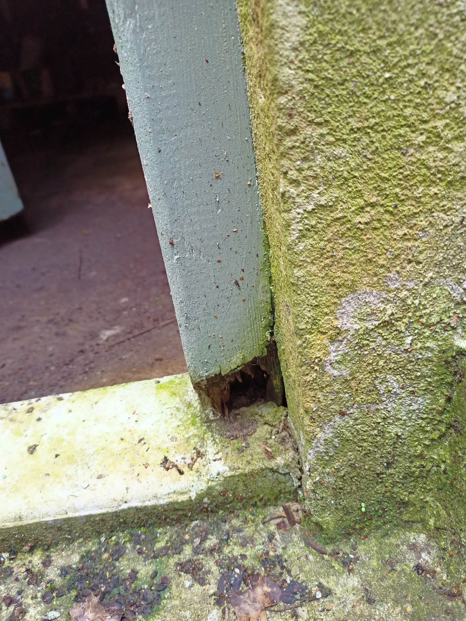 Dörrkarmen nertill är röten? Kan det komma i vatten där? Hur fixar man detta enklast? Har ju aldrig stått vatten utanför dörren.