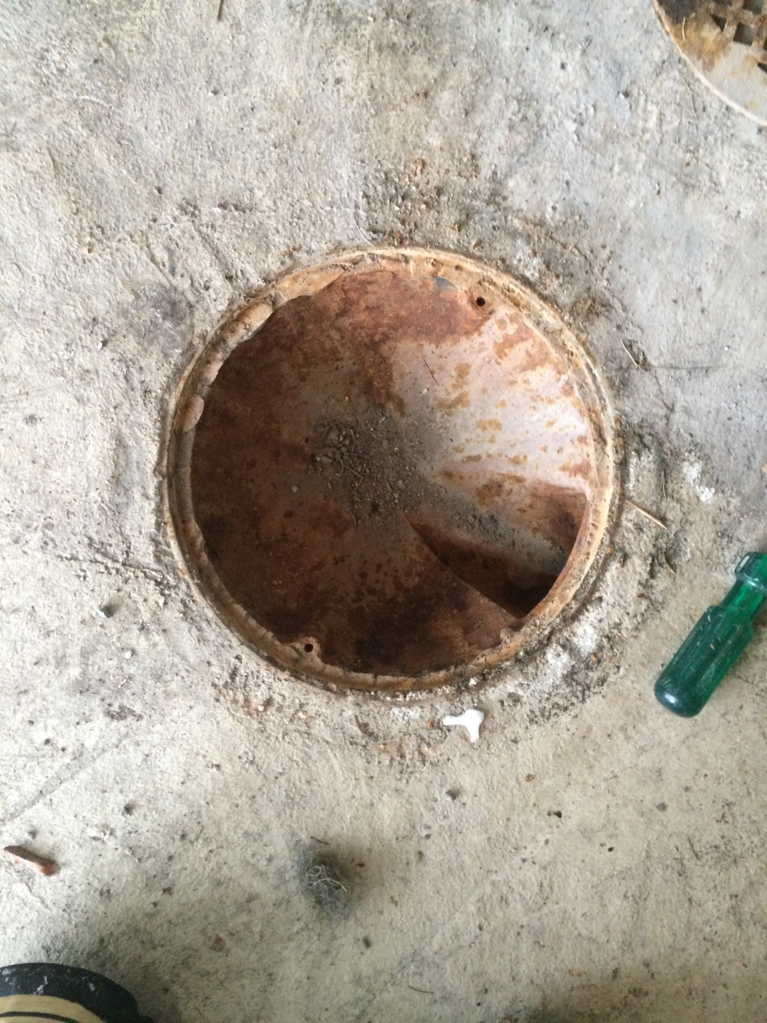 Hej! Har ett garage där tidigare ägare gjutit en platta med golvvärme. Golvvärmen har inte varit inkopplad tidigare, men nu har jag installerat en elpanna och pump, så nu är det värme i garaget. I golvet sitter en golvbrunn med en spygatt av gjutjärn. Ett rör leder vattnet ett par meter vid sidan av huset, ovan mark.