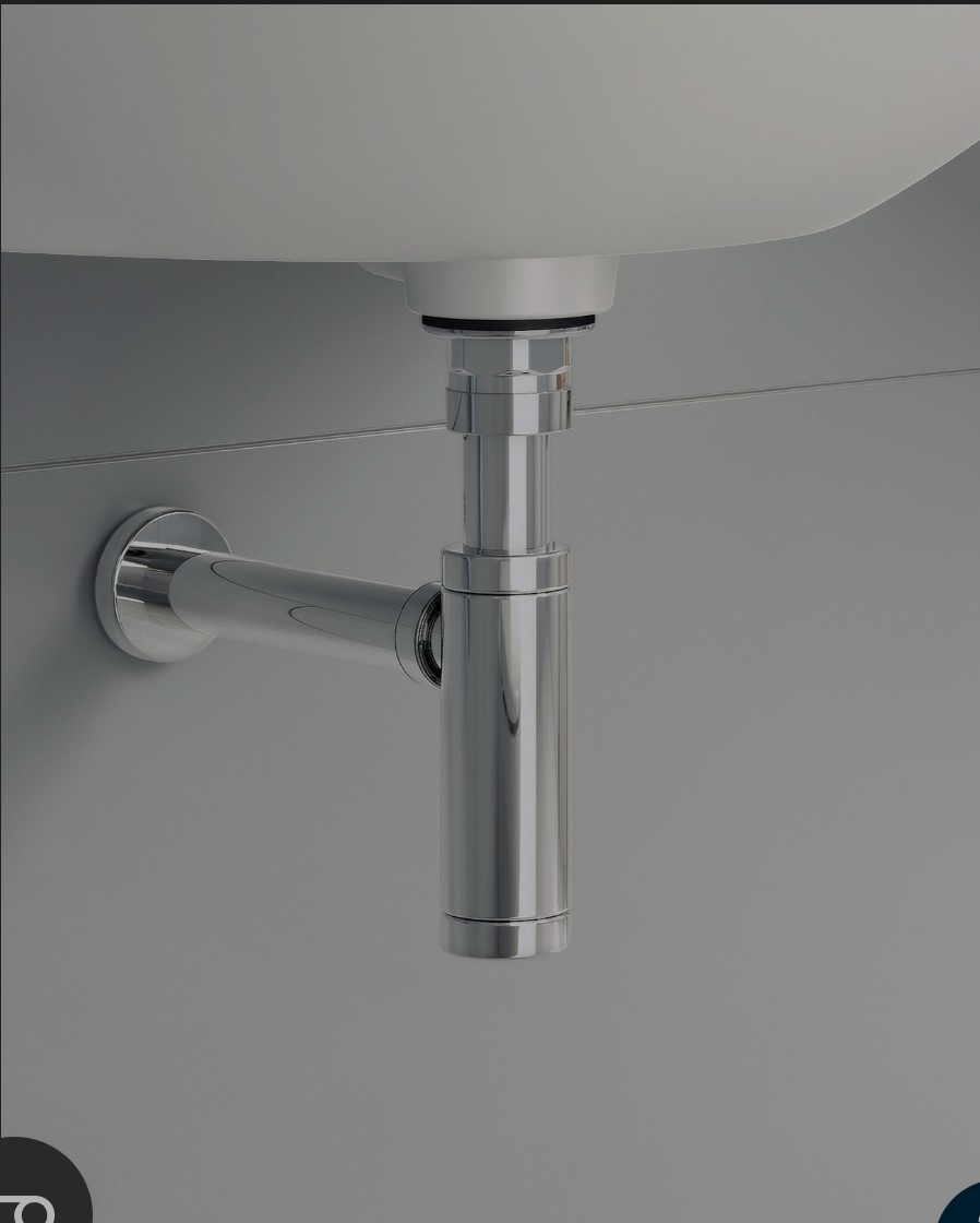 En annan lösning är att montera vattenlåset mot väggen och gå med 45°/90° vinklar upp till handfatet.