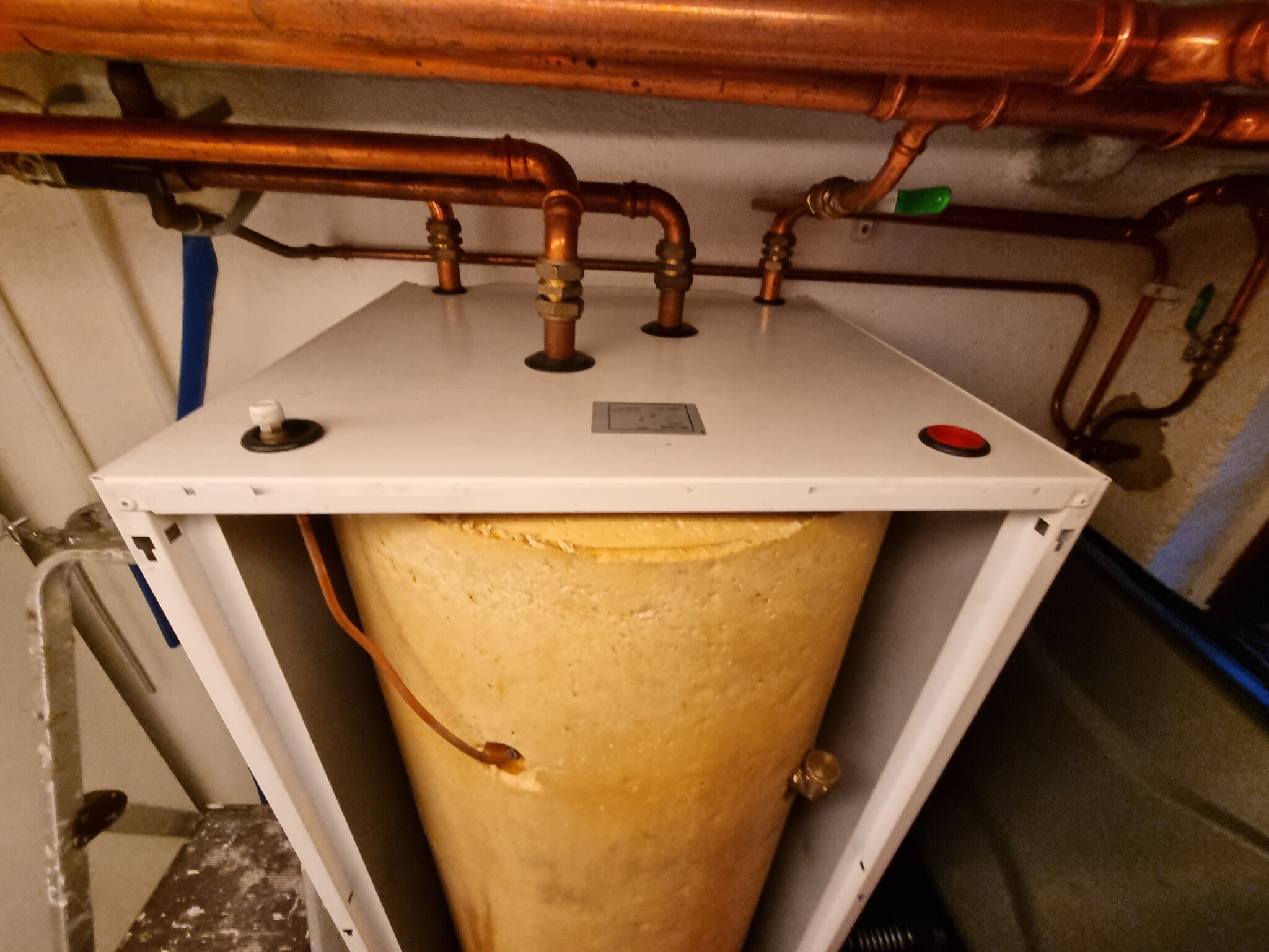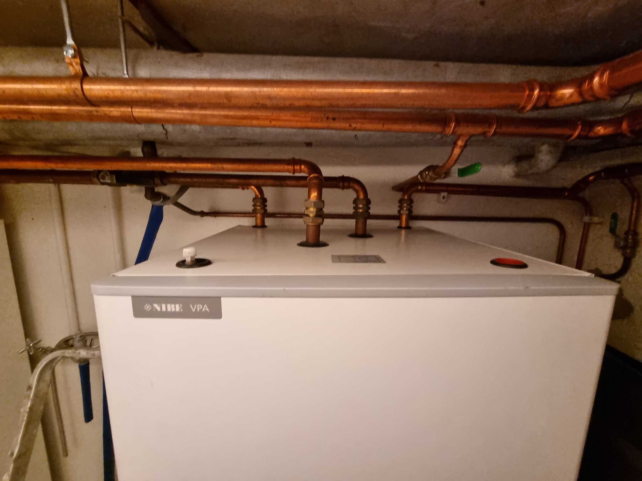 Har nu kikat lite närmare på mitt system och det visar sig vara Nibe VPA 200/70, vilket ger en total volym på 615 liter vatten alltså dubbelt än vad jag angav från start, dessa är seriekoppplade alla in-ugående rör är försedda med aut.övertr.regulatorer. Ytterligare kopplingsplint finns fri ca 300 mm. längre ner på respektive tank. Det är även förberett för att enkelt koppla in ytterligare en cirkulationspump. Hur ändrar detta resonemanget ?