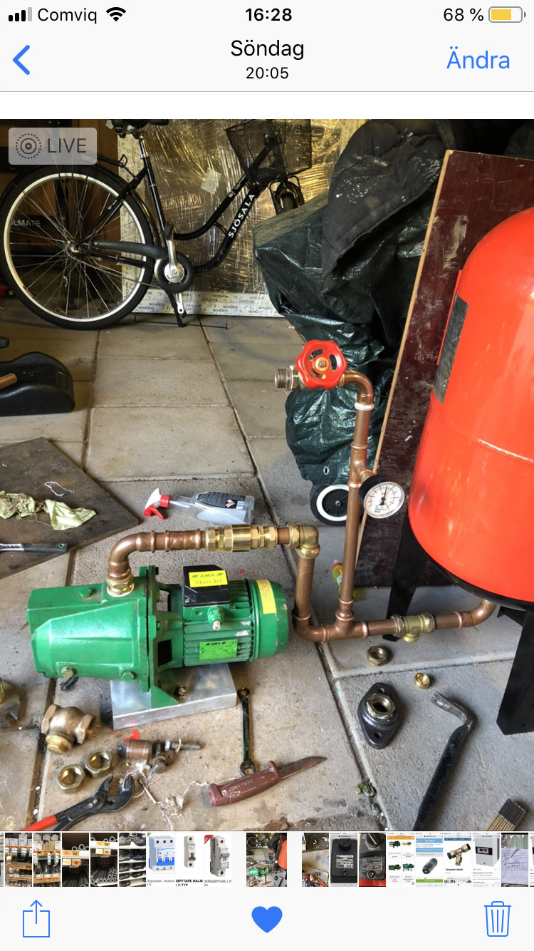 Har en vattenpump som är kopplad så som bilden (1) visar. Min fråga är kan denna modell av vattenpump klara av 50m avstånd från där pumpen är inkopplad till huset? Har även en grävvattenbrunn som är 8 m djupt. Fungerar denna vattenpump? Eller måste de vara en annan modell ? Sedan vad behöver jag tänka när jag kopplar denna vattenpump för att jag ska få bra vattentryck in till huset? (Villa hus) Har bifogat bild.