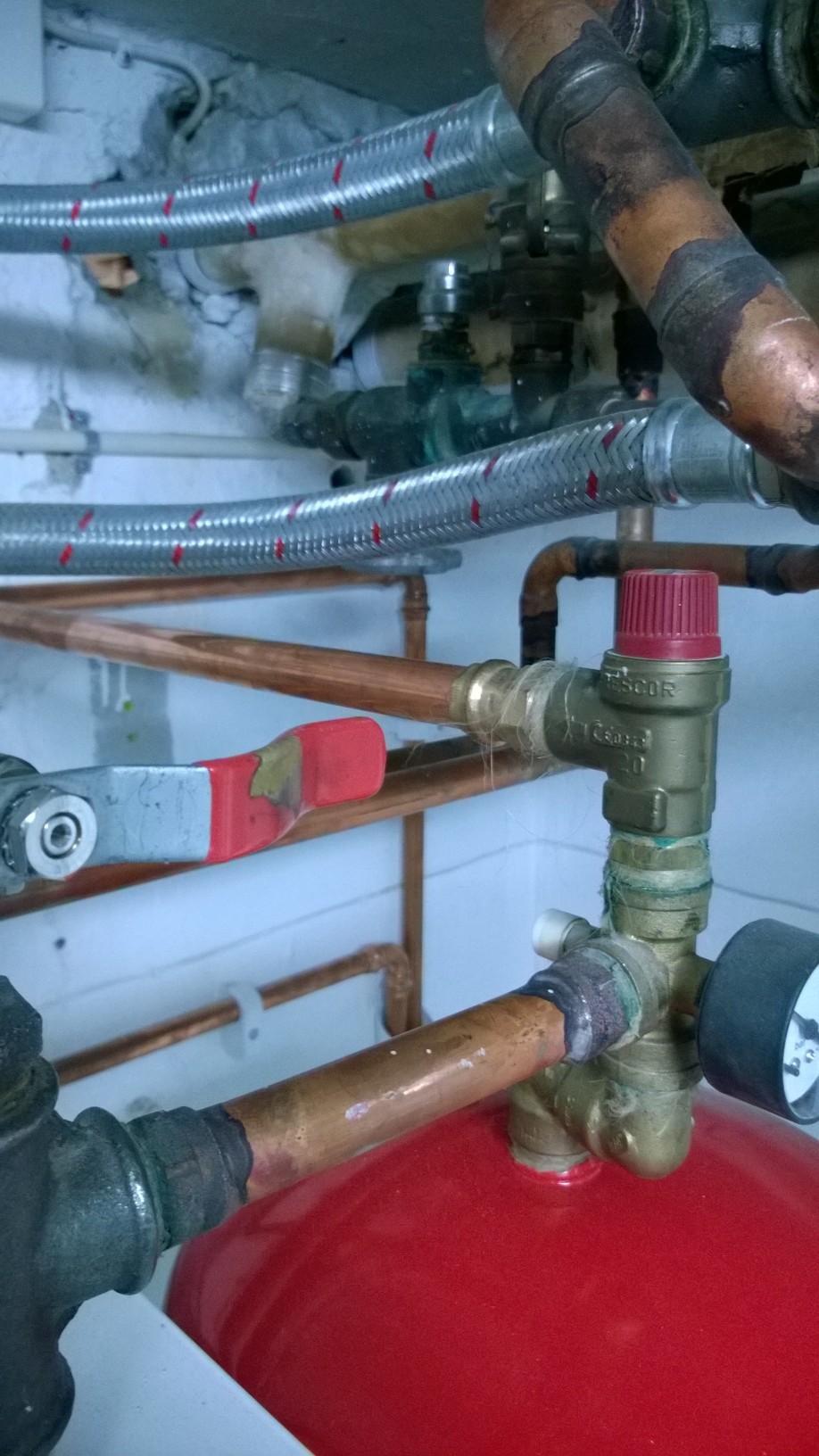 Du har två säkerhetsventiler, den röda är för radiatorsystemet och Durgon är till varmvattenberedningen, båda behövs, liksom vacuumventilen.