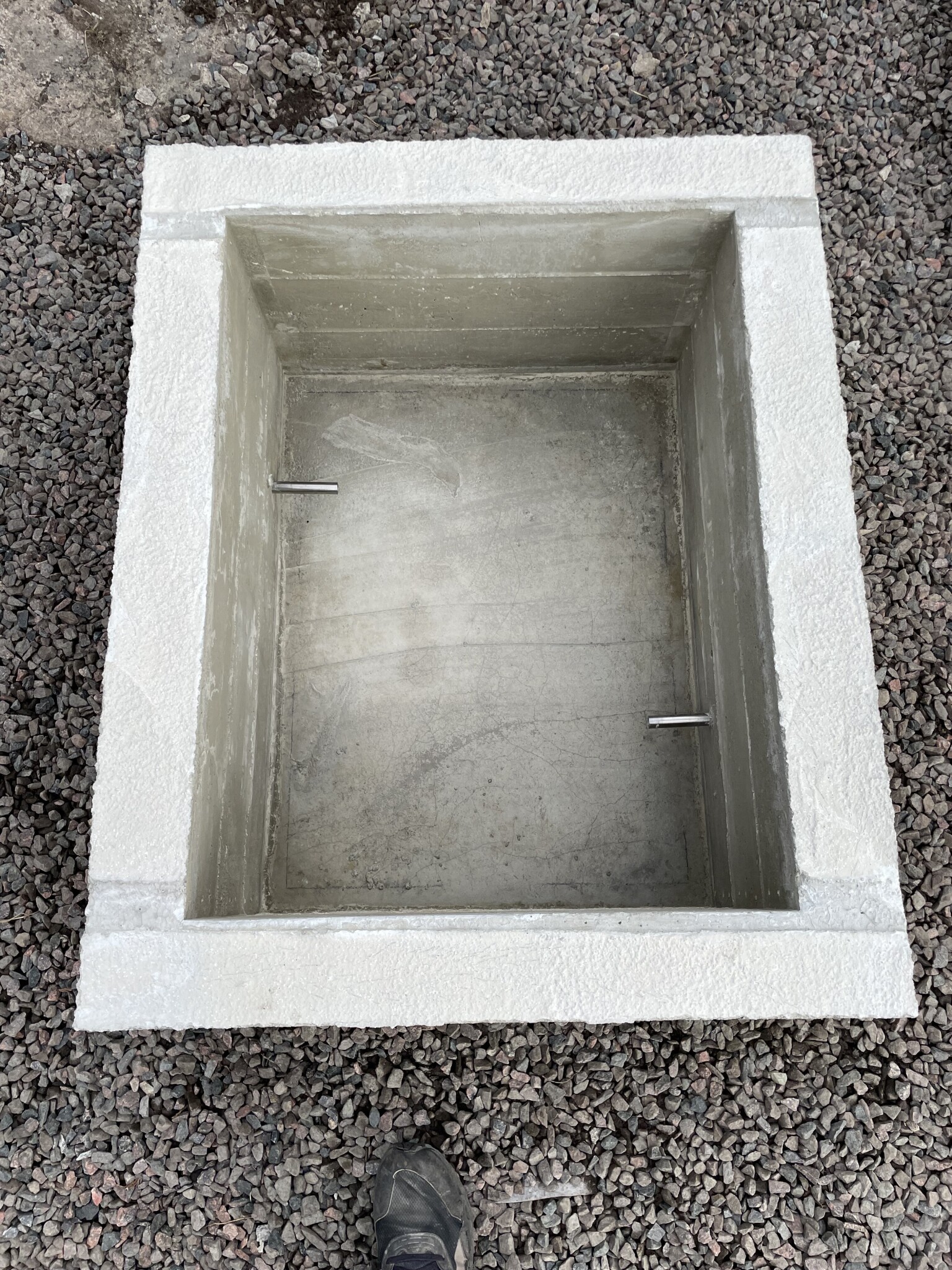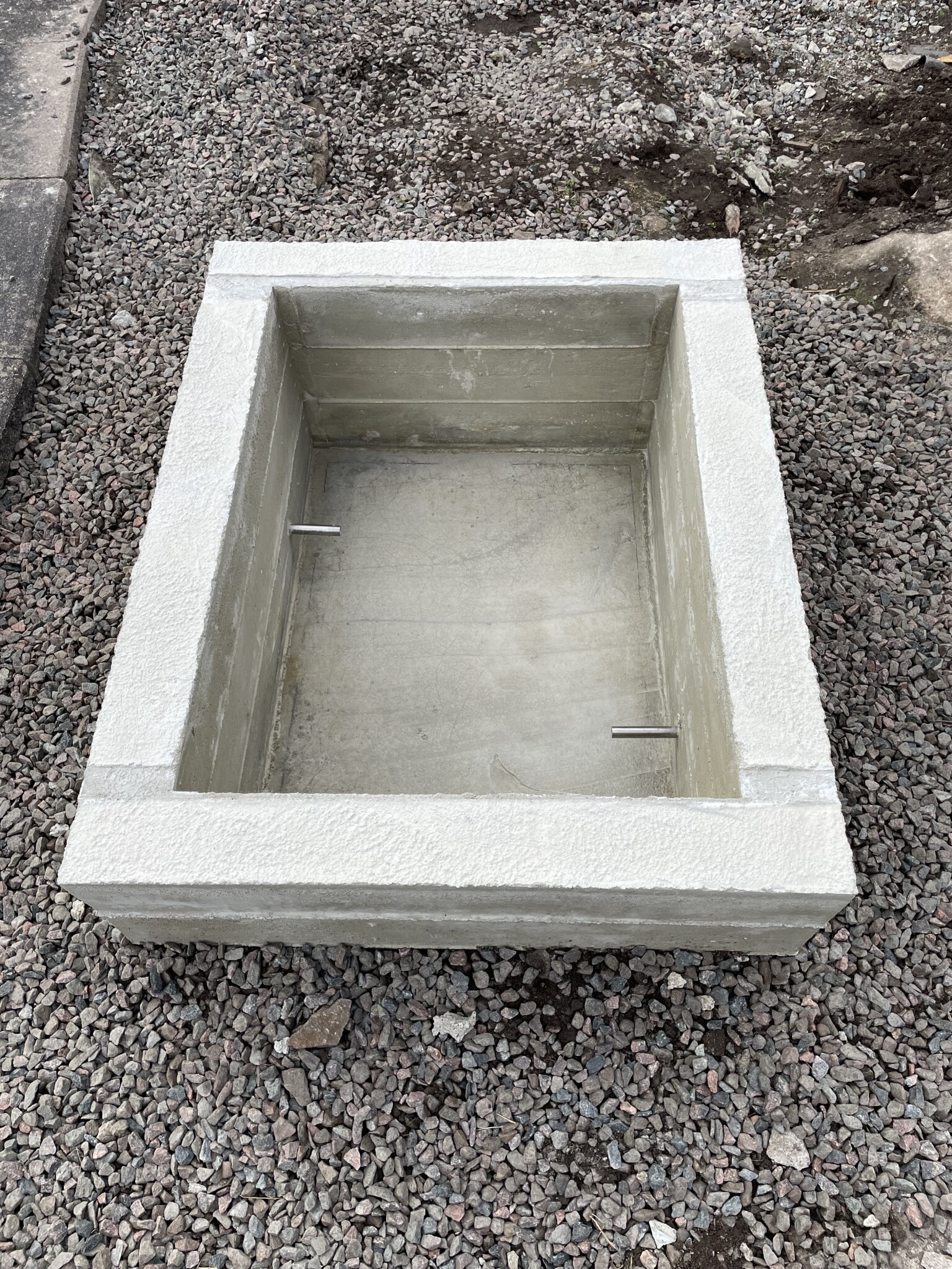 Beträffande tömning funderar jag på att gjuta in röret en bit ovanför fontänens botten. För även om det ska vara tömt och täckt vintertid så kan det ändå samlas vatten i botten och frysa till is, tänker jag.