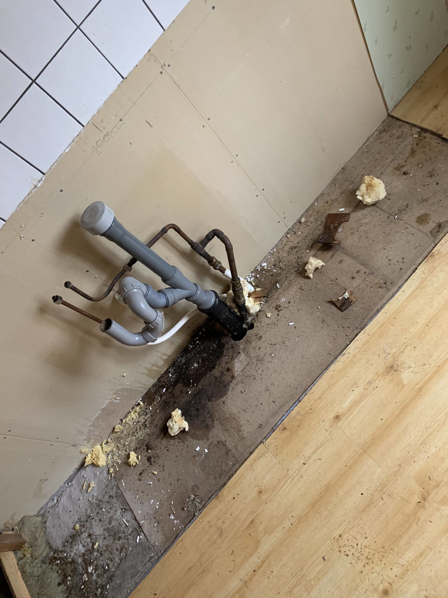 Rev idag ett kök i ett sommartorp och upptäckte detta under diskbänken. Någon som har ett förslag på hur jag lättast byter golvskivan utan att behöva bryta upp golvet då skivan fortsätter en bit in under parketten.