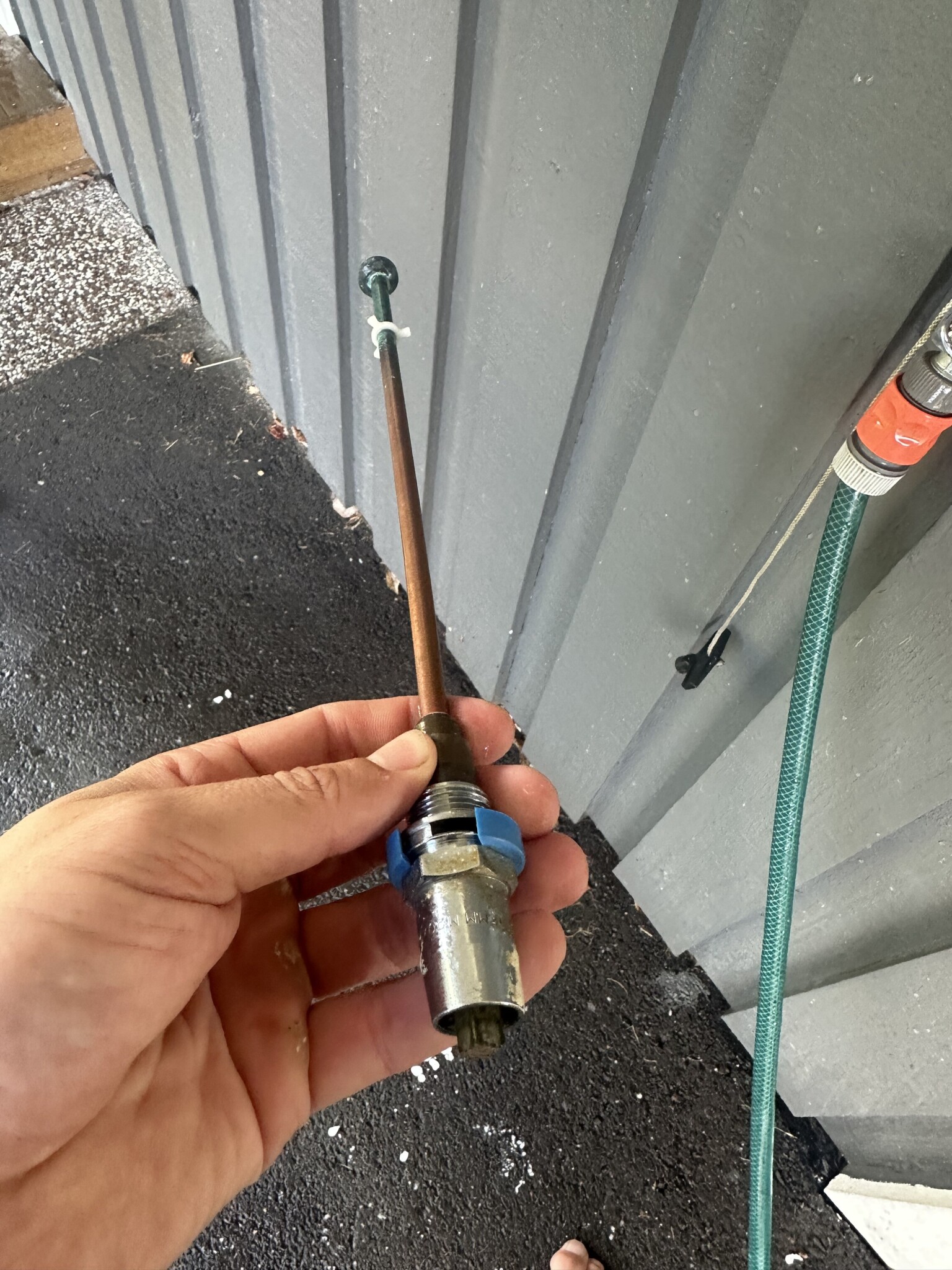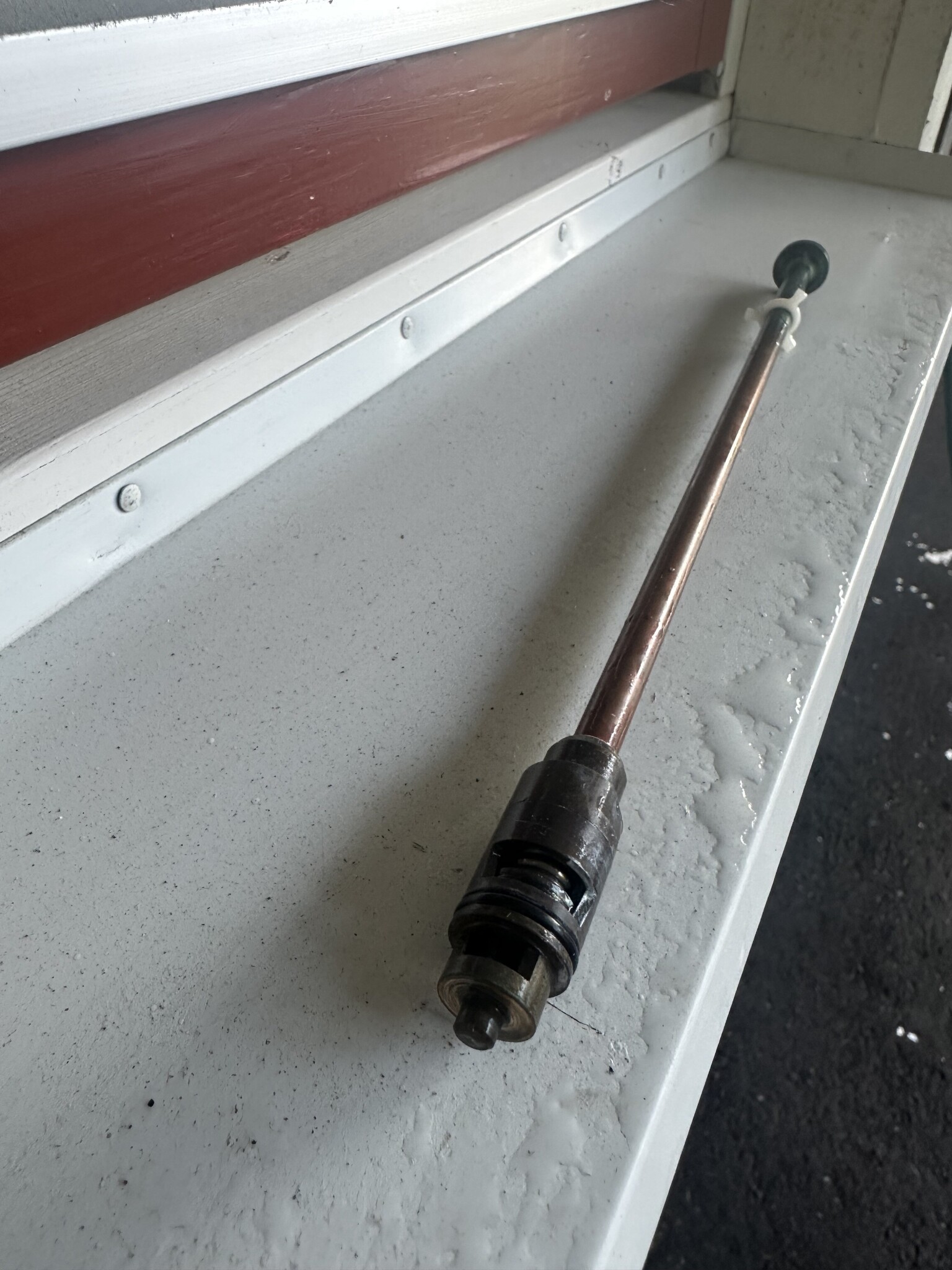 Efter att ha satt tillbaka hela paketet drog jag åt ordentligt med skiftnyckel, lite extra den här gången. Jag misstänker att detta gjorde att gängorna hamnade rätt längre in i röret. När jag sedan vred medurs mötte jag samma motstånd som tidigare, men jag valde att forcera det. Då gled hela "paketet" in några millimeter.
