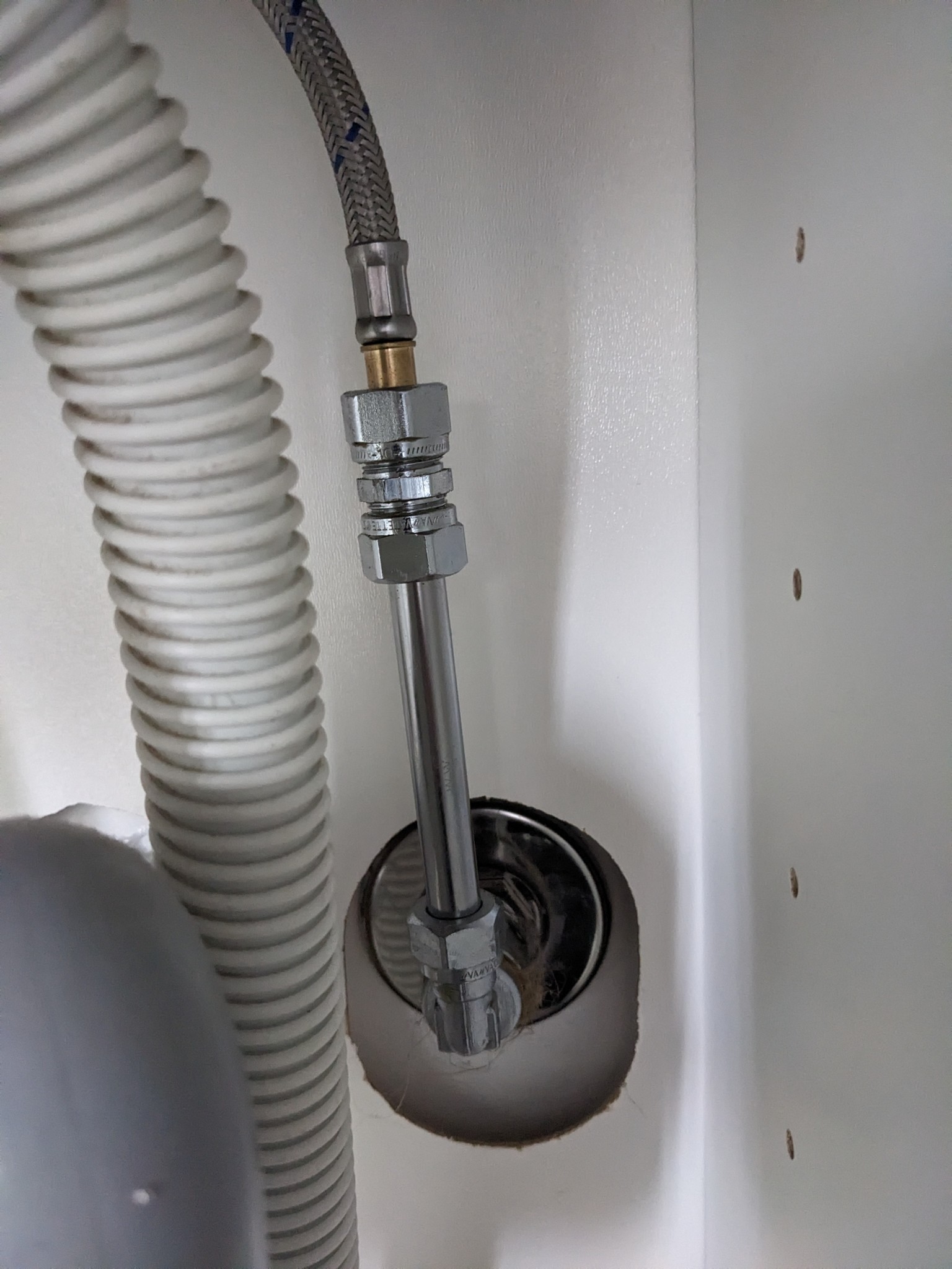 Tanken är att koppla på vattnet från diskbänksskåpet i tvättstugan och sen ca "2 skåp" bort (egentligen bakom förbi tvättmaskinen).
