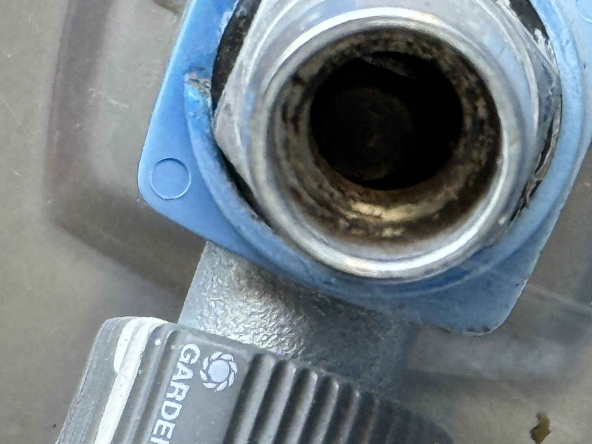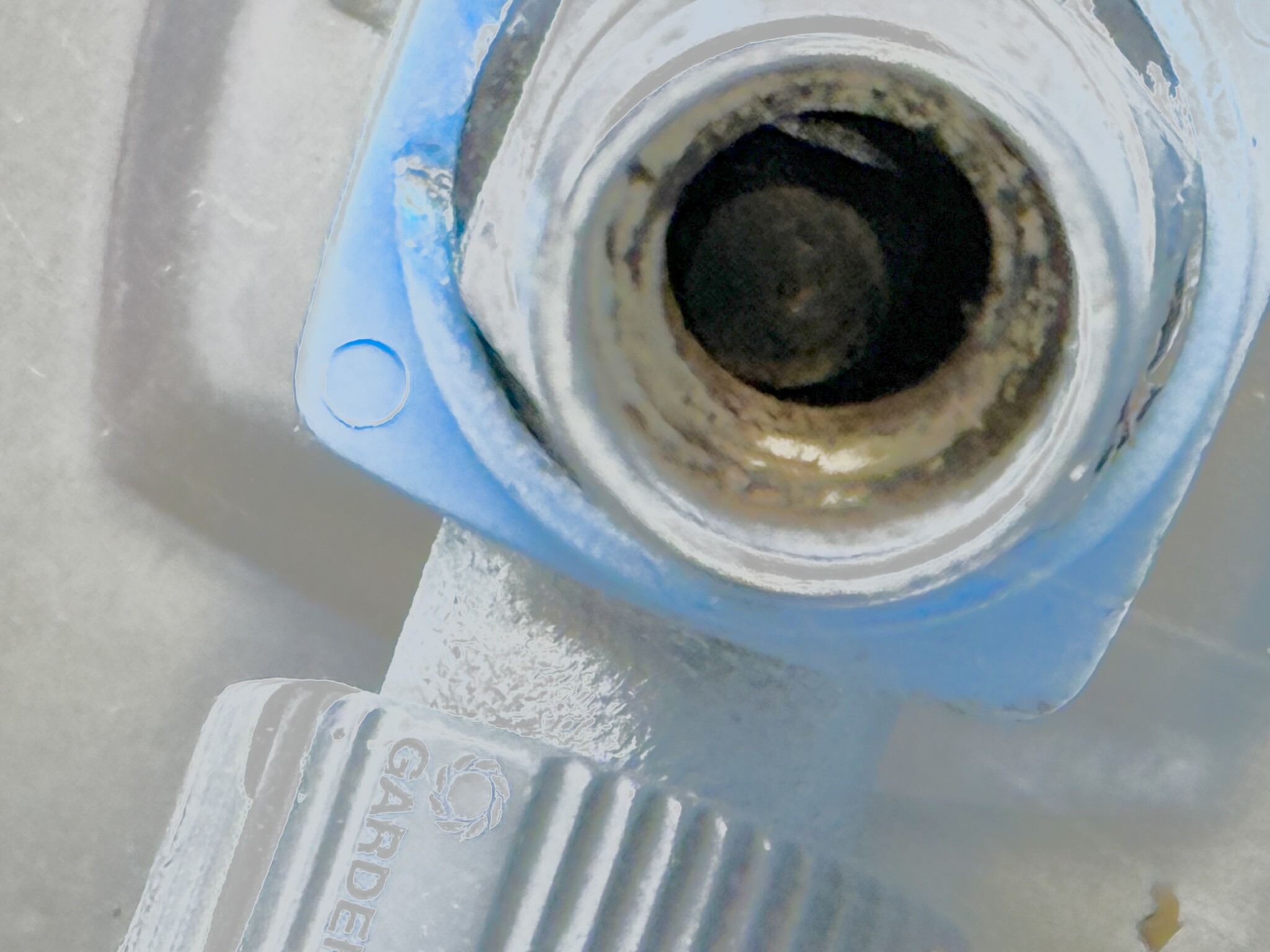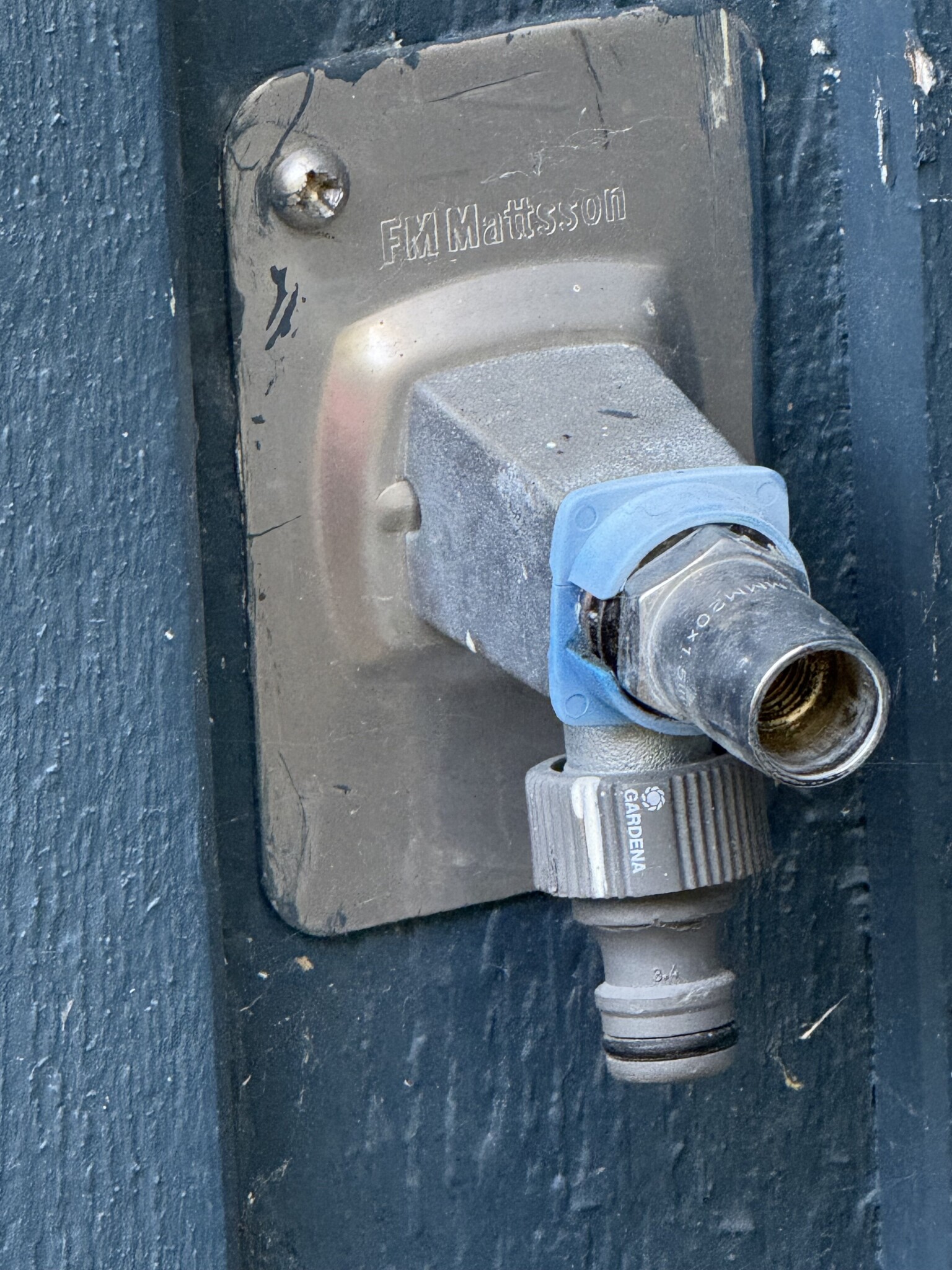 På husväggen har vi en vattenutkastare. Var dock en konstig 6-kantig grej. Försökte komma åt den men den åkte in i utkastaren. Ser helt konstig ut tycker jag. Min gissning ör att ett företag som skulle hjälpa mig med flytspackling försökte öppna ventilen med en bits och att den åkte in i. Någon som ser vad som hänt?