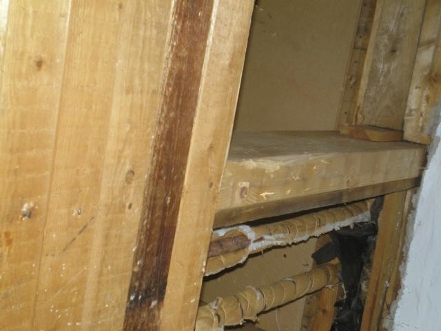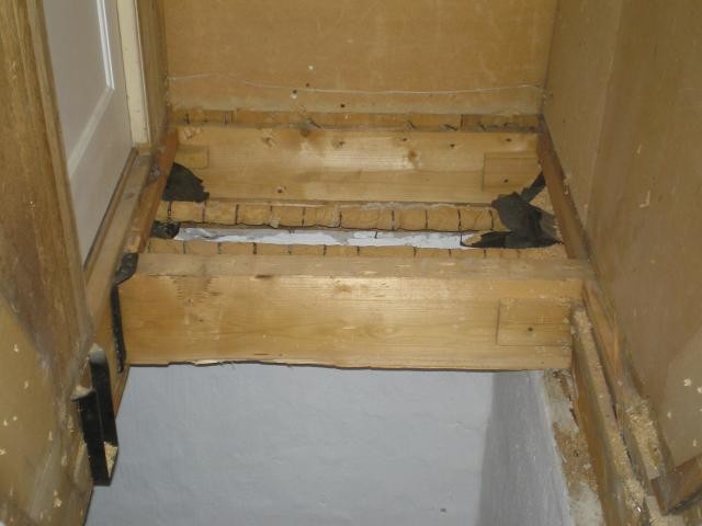 Bryter upp golvet och vad hittar man... Två elementrör och en bärande balk som bär upp grabbens sovrum