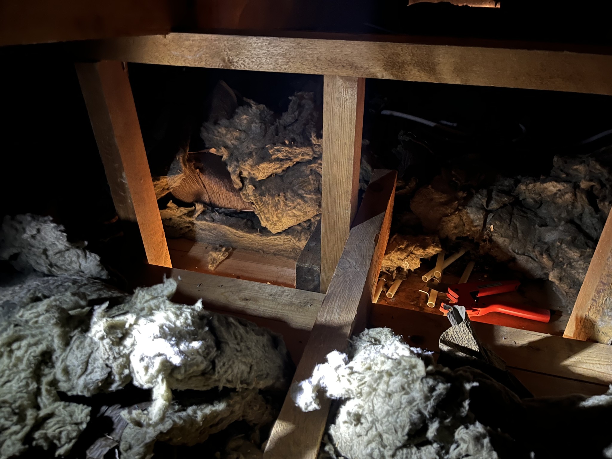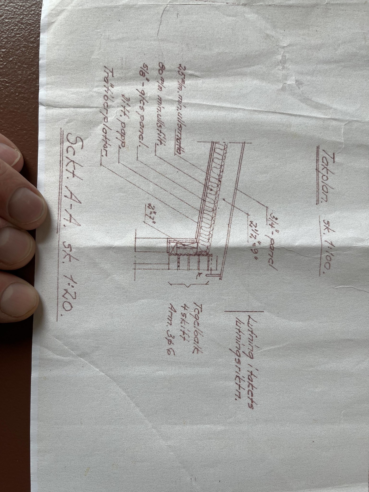1 av dessa reglar går från syll upp till ett hammarband som ligger under takstolarna.