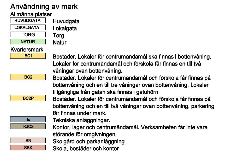 Vad avses med "markanvändning" i en detaljplan? Jag förstår att det omfattar nedanstående tabell, men kan det, t ex, även avse korsprickad och/eller punktprickad mark?