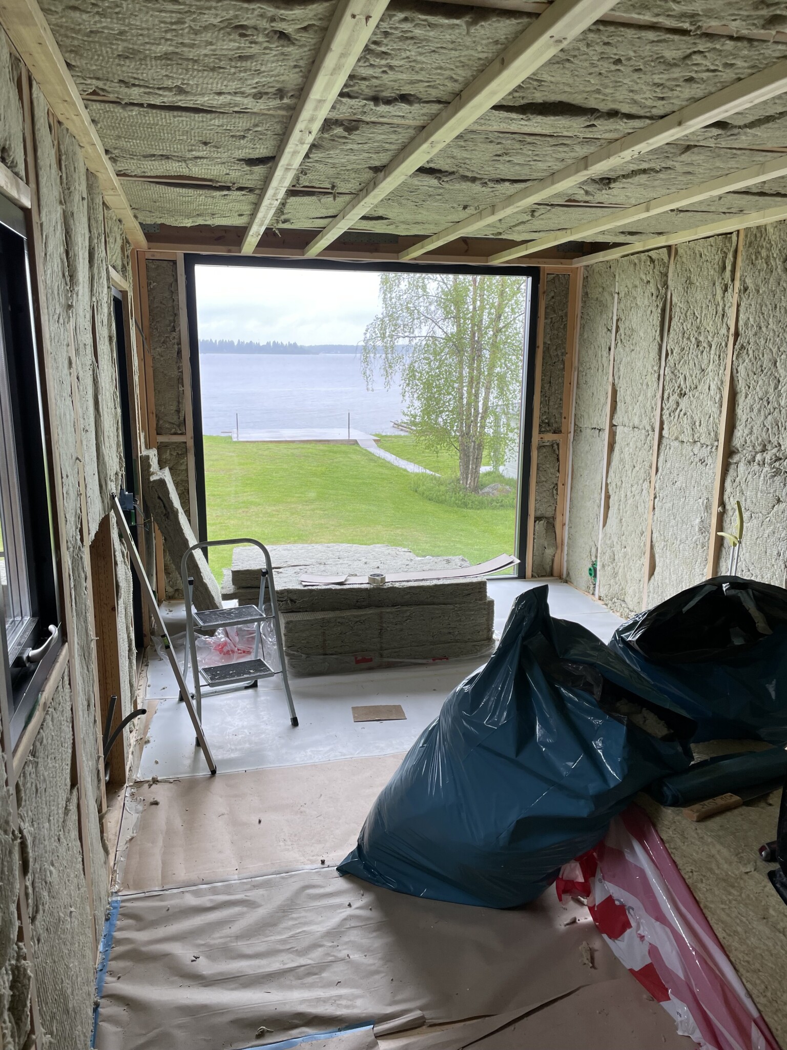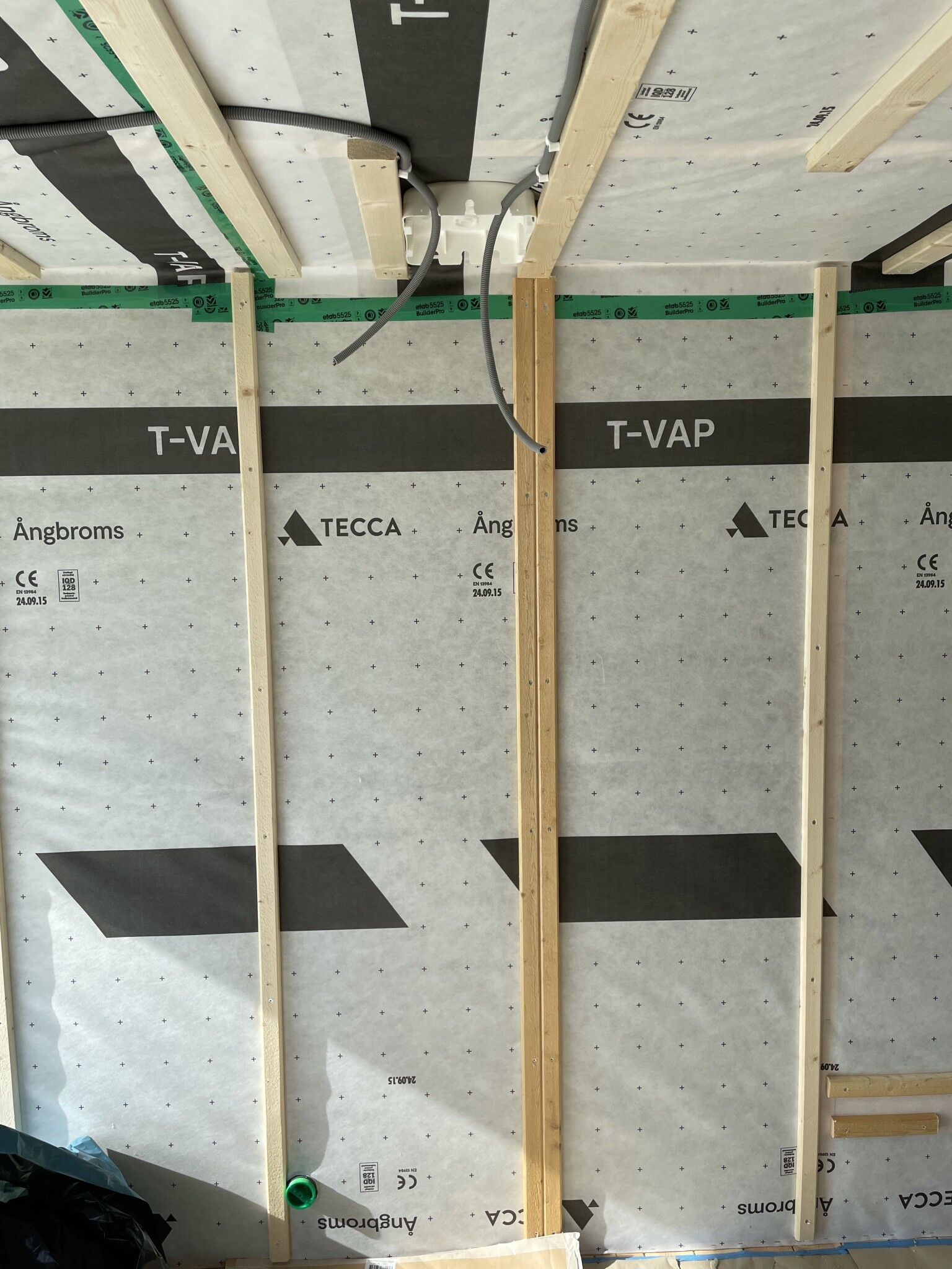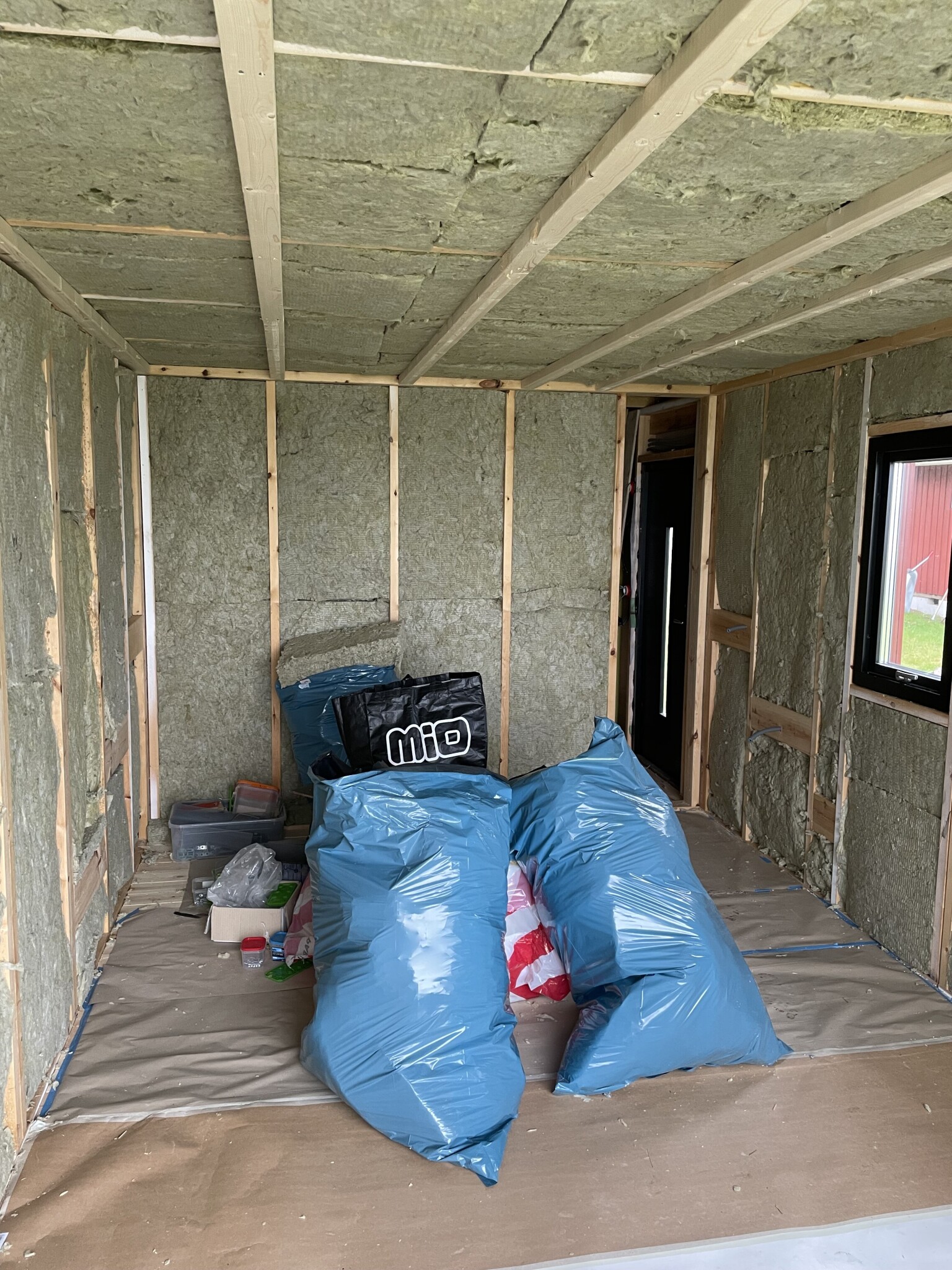 Men nu har jag fått upp ångbroms överallt och läkt på väggarna så närmar sig att börja spika panel.