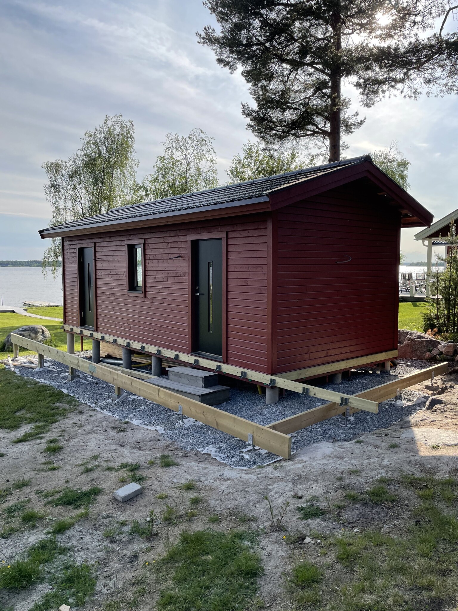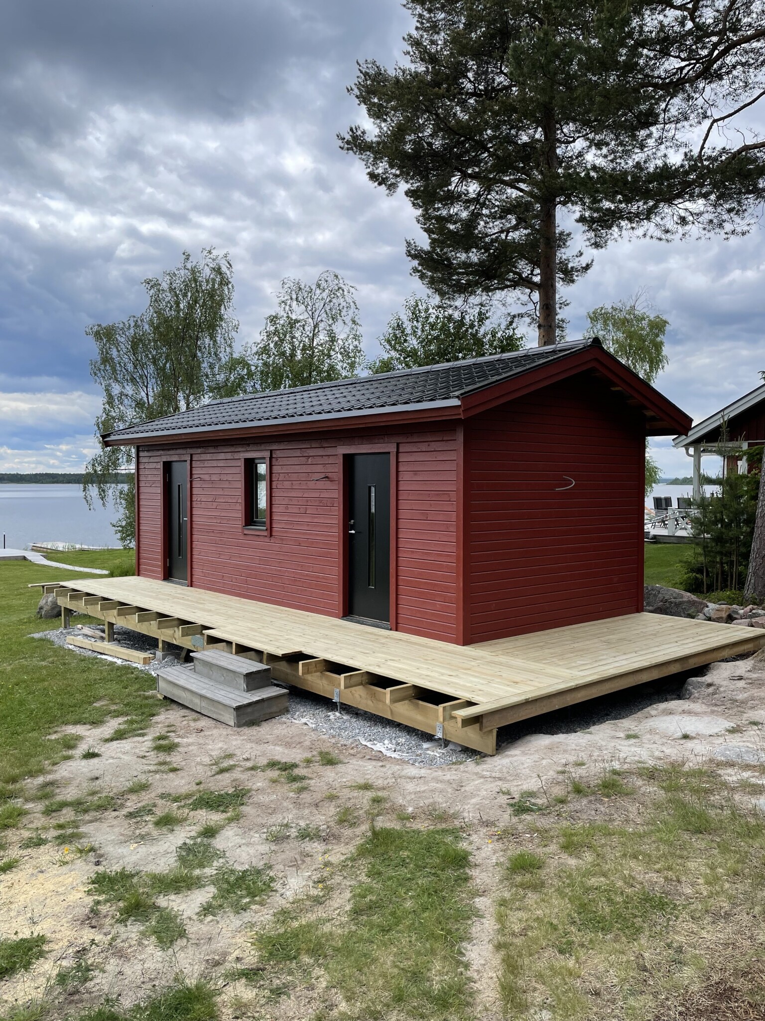 Nu är altanen i princip klar. Endast överliggaren på räcket saknas. Den lilla trappen på kortsidan är tänkt ska fungera som en genväg ner till vattnet.